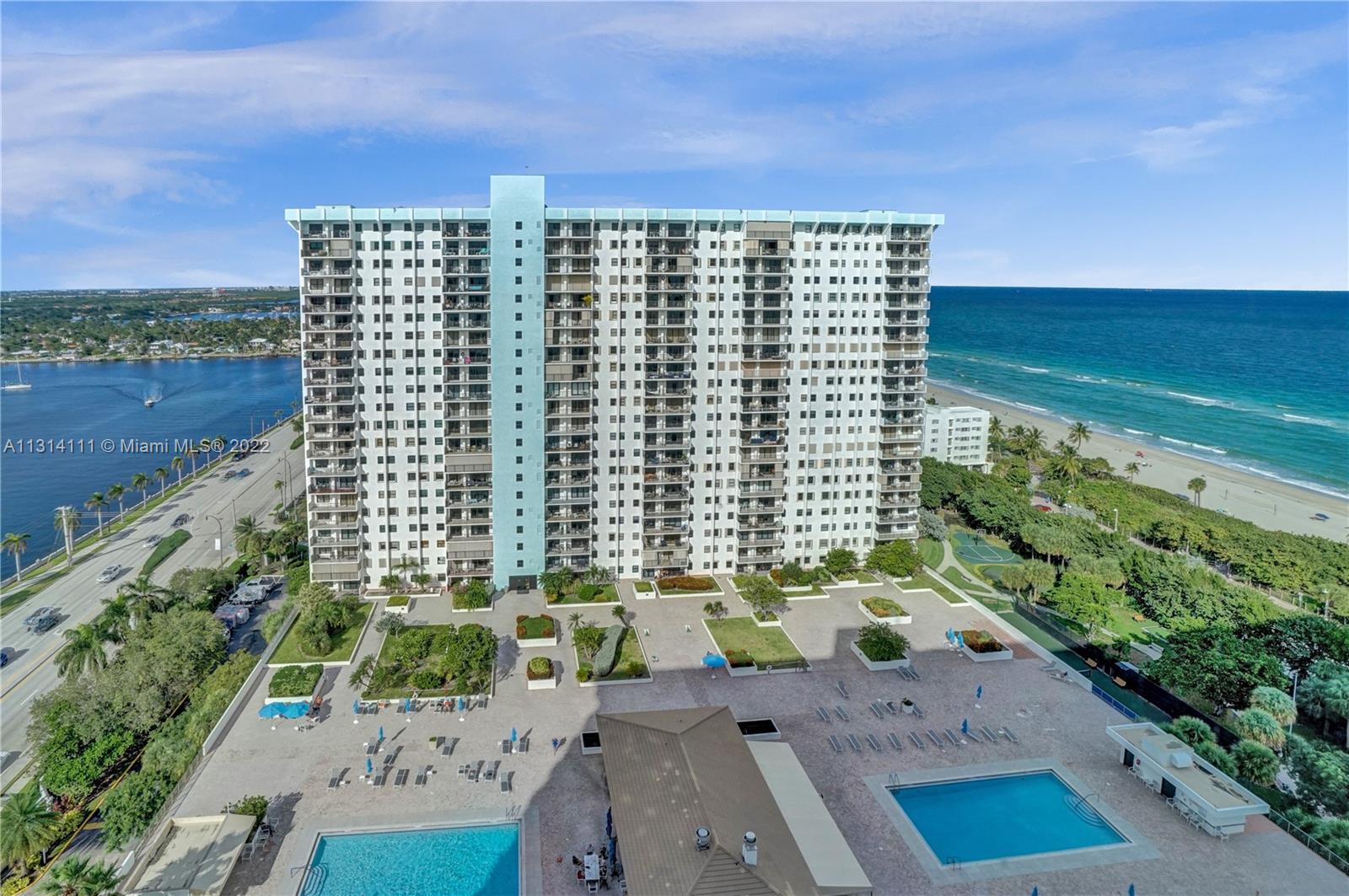 HOLLYWOOD BEACH HIDE-AWAY! LIGHT BRIGHT SOUTHERN EXPOSURE. NEW IMPACT WINDOWS, NEW FLOORS, NEW BATHROOM. & NEW APPLIANCES. FULL SERVICE BUILDING AT HOLLYWOOD BROADWALK. GARDEN VIEWS FACING INTRACOASTAL. UNIT IS FIRST FLOOR & CAN BE ACCESSED THROUGH LOBBY OR THROUGH PRIVATE PATIO. 1 LARGE BEDROOM W/ DRESSING AREA AND WALK-IN CLOSET. KITCHEN HAS PASS THROUGH TO LIVING ROOM DINING AREA. WHITE & NEUTRAL PALATE READY TO MAKE IT YOUR OWN. AC IS ONLY TWO YEARS OLD. WASHER DRYER INSIDE THE UNIT. 2 POOLS, RESTAURANT ON POOL DECK SERVING BREAKFAST LUNCH AND DINNER, 2 TENNIS COURTS, BOCCE, PICKLEBALL, BASKETBALL, PUTTING GREEN & DRIVING NET, BIKE STORAGE, EXERCISE ROOMS AND BROADWALK FEATURING RESTAURANTS SHOPS AND WALKING, JOGGING, BIKE BATHS. PRISTINE OCEANFRONT BLDG OFFERING BEACH SERVICE DAILY