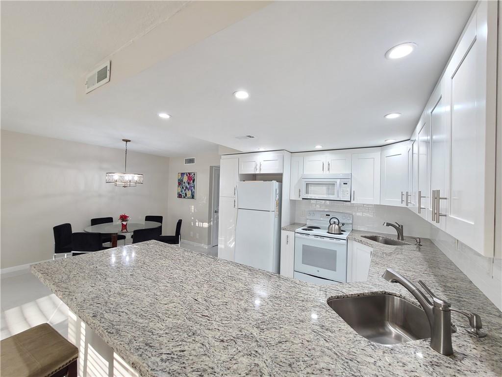 TOP OF THE LINE ALL THE WAY!! COMPLETELY UPDATED SPACIOUS 842 FEET 1 BEDROOM, 1.5 BATHS 4TH FLOOR CONDO. OPEN MODERN KITCHEN. GRANITE COUNTER TOP. LOTS OF COUNTER SPACE. DOUBLE SINK. WHITE CABINETS WITH SELF CLOSED DRAWERS & PANTRY. TILE BACKSPLASH. PORCELAINE TILE & LAMINATE FLOOR IN THE BEDROOM. 2 UPDATED BATHROOMS. SPACIOUS BEDROOM W/ WORKING AREA & OVERSIZE WALK-IN CLOSET. NEW MODERN FURNITURE. BUILDING LOCATED IN A QUIET REMOTE LAREA. ENJOY A RELAXING GARDEN VIEW FROM YOUR SCREENED PATIO WITH IMPACT SHUTTERS. BUILDING W/ RESERVE FUNDS. NEW ROOF. FRESHLY PAINTED. LOCATED STEPS TO A PRIVATE POOL & BBQ AREA ASSIGNED FOR BUILDINGS A.B.C IN GREENBRIER ONLY. SECURED BIKE STORAGE. WELCOME TO CENTURY VILLAGE W.P.B. 24/7 GATED ACTIVE 55+ COMMUNITY. MINUTES TO SHOPPING & RESTAURANTS. MUST SEE