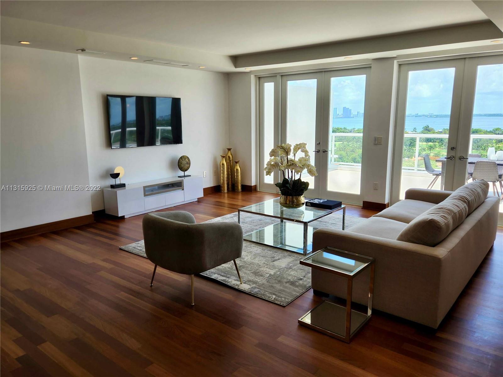 LUXURY 2 BEDROOMS, 2 FULL BATHROOMS PENTHOUSE. 1,840 SQUARE FEET UNDER AIR CONDITIONING & AN ADDITIONAL 950 SQUARE FEET OF TERRACE W/ GORGEOUS VIEWS OF THE INTRA-COASTAL, BISCAYNE BAY, LA GORCE GOLF COURSE, & DOWNTOWN MIAMI AND THE SUNSET. THIS UNIQUE PENTHOUSE INCLUDES A POOL-SIDE CABANA W/FULL BATH. THE RESIDENCE IS FULLY FURNISHED, FEATURING ITALIAN SNAIDERO CHERRY WOOD KITCHEN CABINETRY,SNAIDERO BATHROOM CABINETS AND MIELE APPLIANCES .SOLID WOOD FLOORS. MARBLE BATHROOMS. JACUZZI IN MASTER BATH.LAUNDRY ROOM. PRIVATE STORAGE ON THE APARTMENT FLOOR. PRIVATE WINE CELLAR. 2 PARKING SPACES ASSIGNED. BUILDING COMPLETELY RENOVATED WITH NEW GYM, POOL AREA, ELEVATORS, LOBBY, HEATED POOL, RESTAURANT, MASSAGE ROOM. TV/WIFI INCLUDED.BUILDING HAS PRIVATE MARINA. BOATERS DREAM.