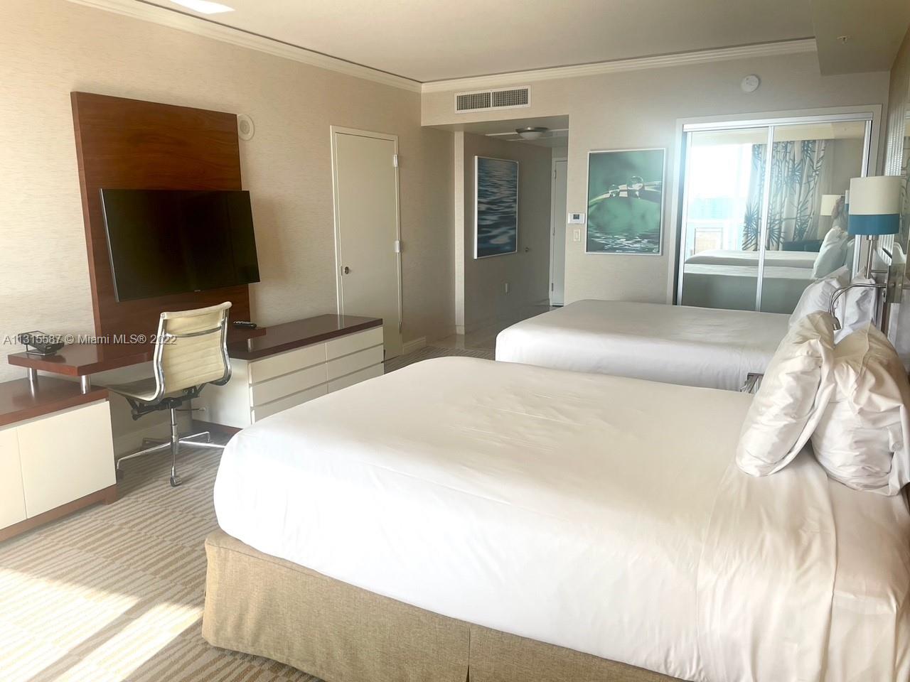 Fully furnished Deluxe studio with 2 Queen beds at the beachfront Trump International Resort, located in the heart of Sunny Isle. Conveniently located near the Bal Harbour Shops and Aventura Mall. Enjoy the finest resort amenities such as full beach and pool service, salon, spa, bar, restaurants, tennis courts, fitness and business center. Take advantage of the on-site hotel program to generate hassle-free rental income when you are not using the vacation condo. Don't miss out on this fantastic opportunity!