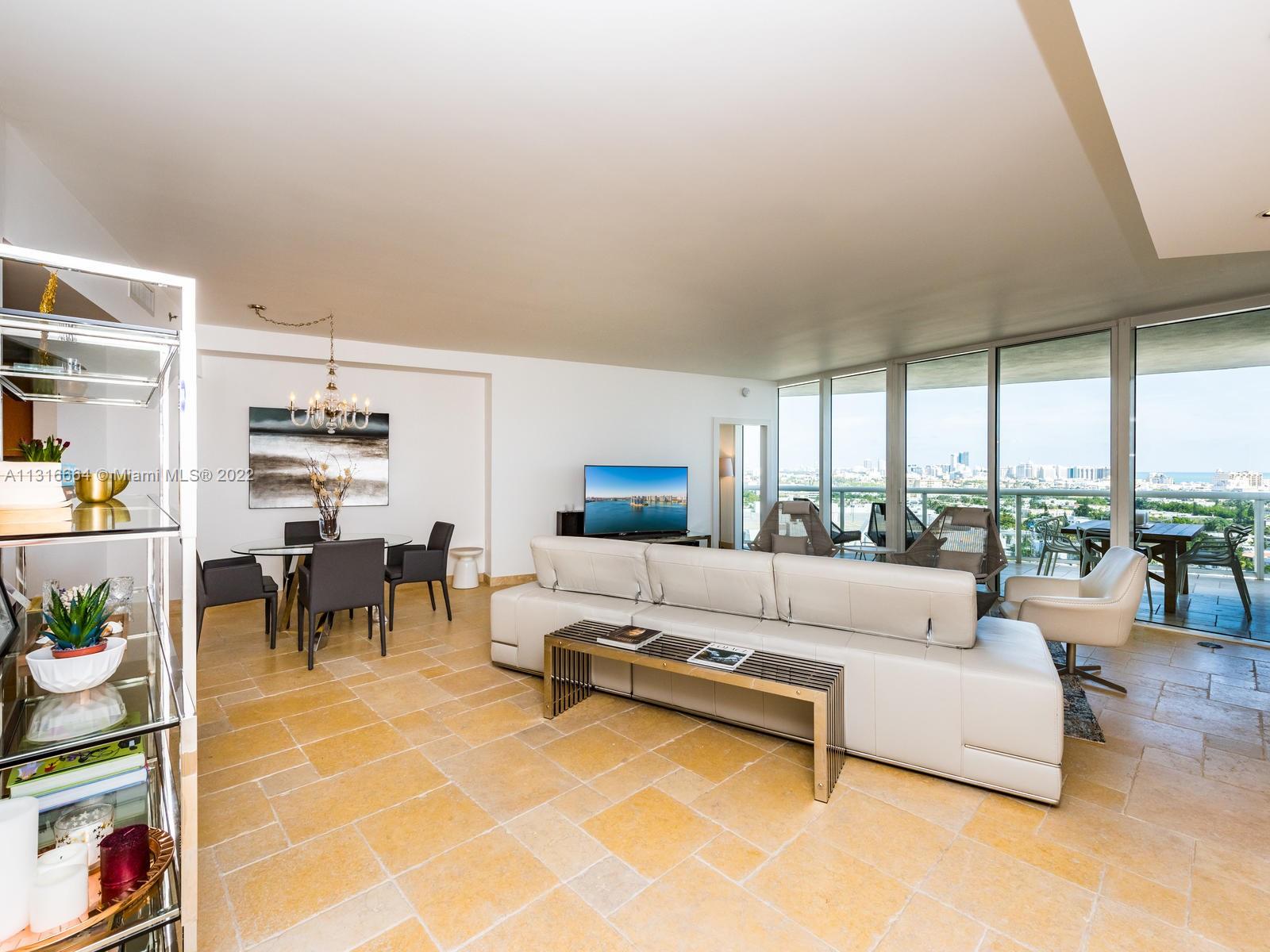 MURANO GRANDE LUXURY RESIDENCE at Miami/ South Beach. Enjoy 180 Degree Bay , Ocean & City Views from every room in the apartment! Floor to Ceiling Glass Window Huge 2 bedroom, 2/5 bathroom and 2 balconies has a dramatic view of the marina, downtown and Star Island. The large master bedroom has an impressive designer's touch with an open Jacuzzi. This South of Fifth building's amenities include Gym, Pool, Boat Dock & Marina Tennis court, restaurant and more.. Walk to the beach, restaurants shopping..
