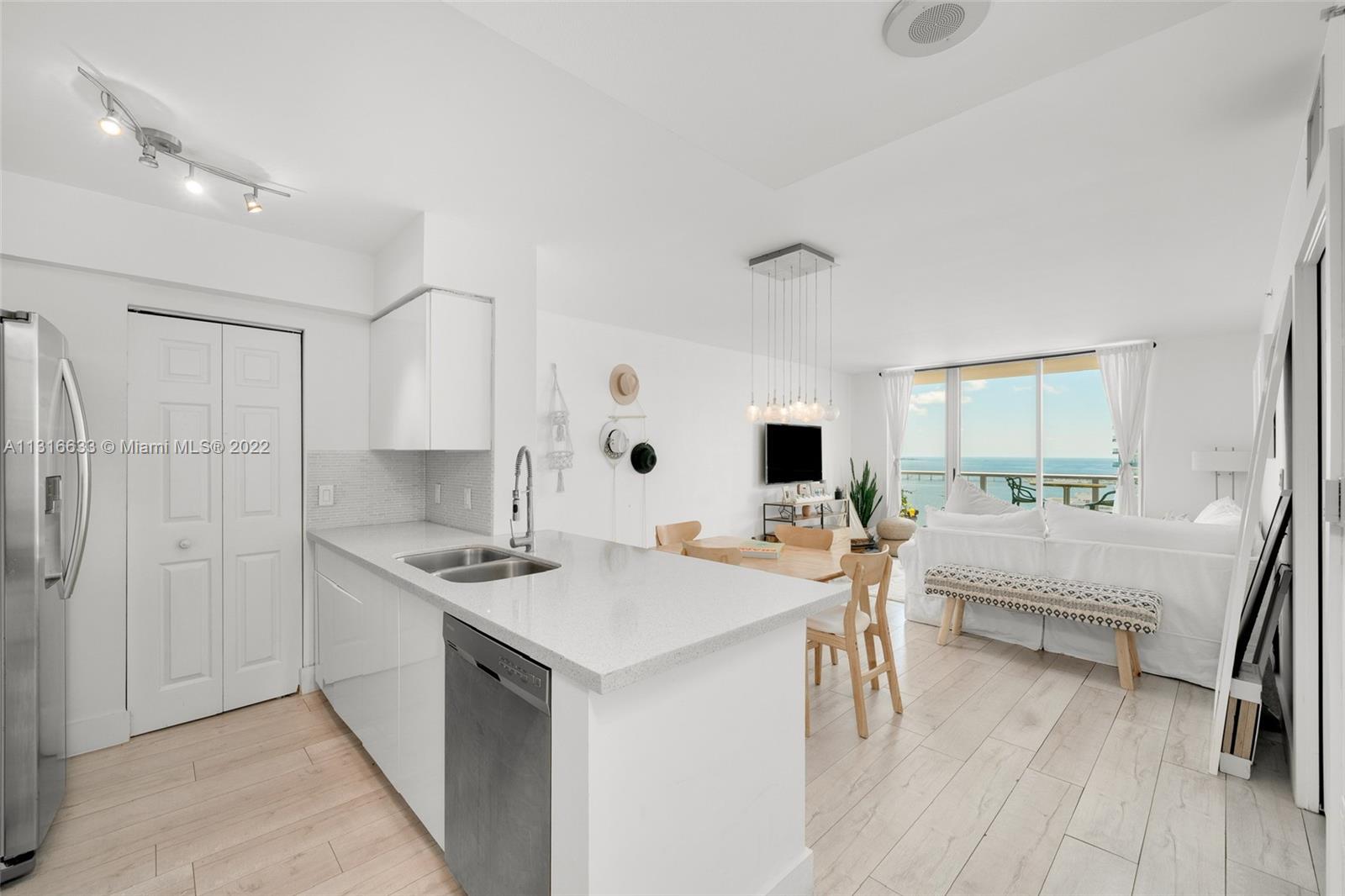 Stunning one bedroom on the 26th floor at the renovated Mark on Brickell. This unit offers spectacular views of Biscayne Bay that can be seen from each room, and a large extended balcony. This remodelled unit features an open kitchen with stainless steel appliances, recently installed waterproof grey oak porcelain floors, a fully redone bathroom and a brand new AC unit. Great opportunity for personal use and/or investment. The building offers resort-like amenities including security, valet, a large bayview swimming pool & spa, tennis and racquetball courts, BBQ area, fitness center, and a full service restaurant on the first floor. One assigned garage parking space and a second valet space is included at no additional charge. Centrally located near shops and restaurants.