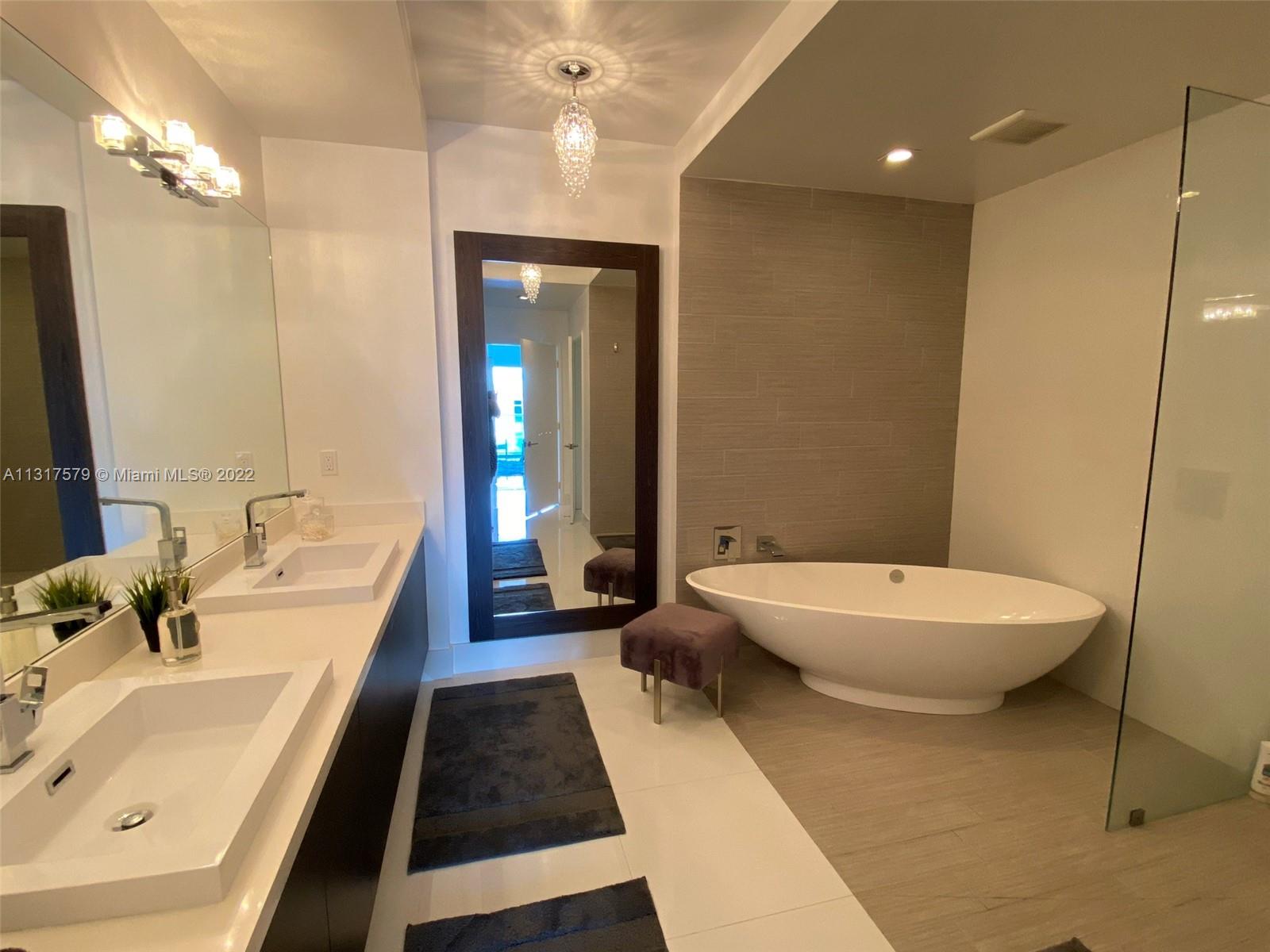 Amazing high ceilings 11 ft substantially remodeled 3 bed, 3 bath condo at new building Parque Towers in Sunny Isles Beach. Tastefully decorated and fully furnished, open kitchen features Bosch and Subzero appliances, porcelain floors throughout, built-in closets, blinds on all windows. Den was converted to bedroom (with bathroom and closet). One assigned parking in the garage, one valet. The building offers tons of amenities, including full-service concierge, free valet parking, expansive pools, poolside bar, state of the art fitness center, kids club, private theater, gaming room, personal limousine, butler service. Unit is rented at $5500/mo till August 2023.