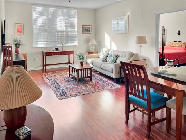 Rare 2/2 in the best-kept secret in The Square, in super-hot downtown West Palm Beach. Big spaces, big closets, newer A/C & water heater, package delivery right outside your door, easy 1st floor access. Includes covered parking, security, pool, gym, hot tub. Walk to theater, arts, shopping, and dining in the newly renovated Square. Quiet oasis in paradise in the middle of the action in Paradise. You will love this unit every time you come home. Make it your home, use it for holidays, or rent it out for income in hot downtown West Palm Beach. Grab this fast!