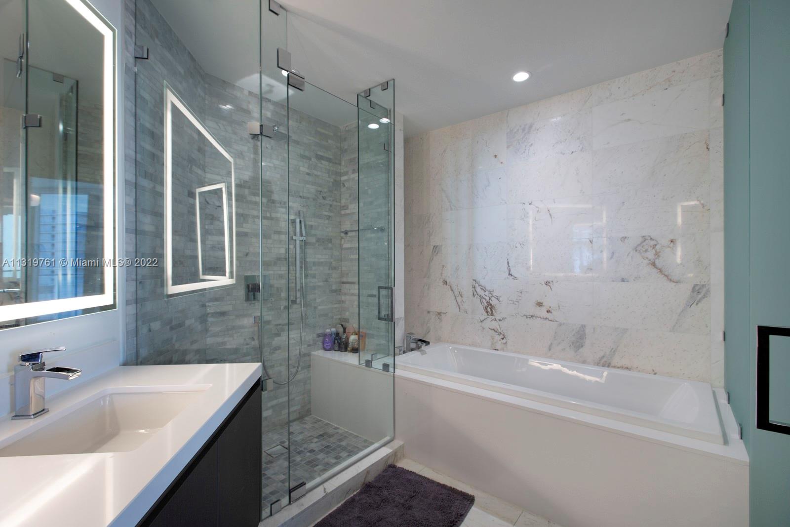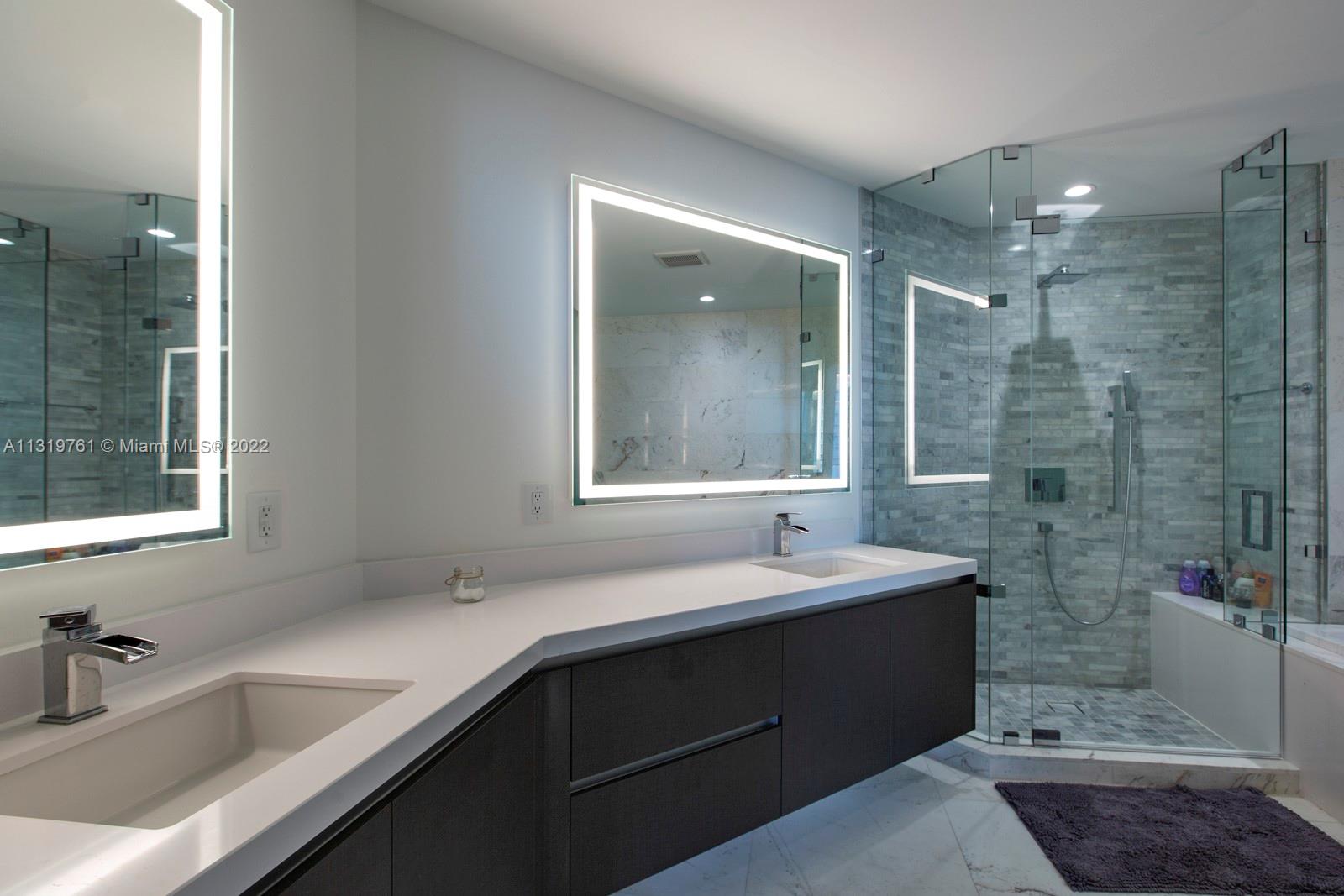 Exquisite custom residence with over 3,000 SF at Paramount Miami World Center. This combined residence offers large entertaining space, floor to ceiling windows offer lots of natural light and stunning views of the city and Biscayne Bay, two primary bedrooms with ensuite bathrooms and two balconies. Large open area with full bathroom can be easily converted into a third room. Designed by Steven G with redesigned kitchen with custom cabinetry by Italkraft, Subzero and Miele appliances Geoluxe countertops, Poliform closets, motorized shades, large 30x70 Italian porcelain floors, contemporary lighting, custom built-ins and bar. Two self-parking spaces included. Building offers an amenity rich environment including multiple pools, gym, spa, jam room, media room, and more.