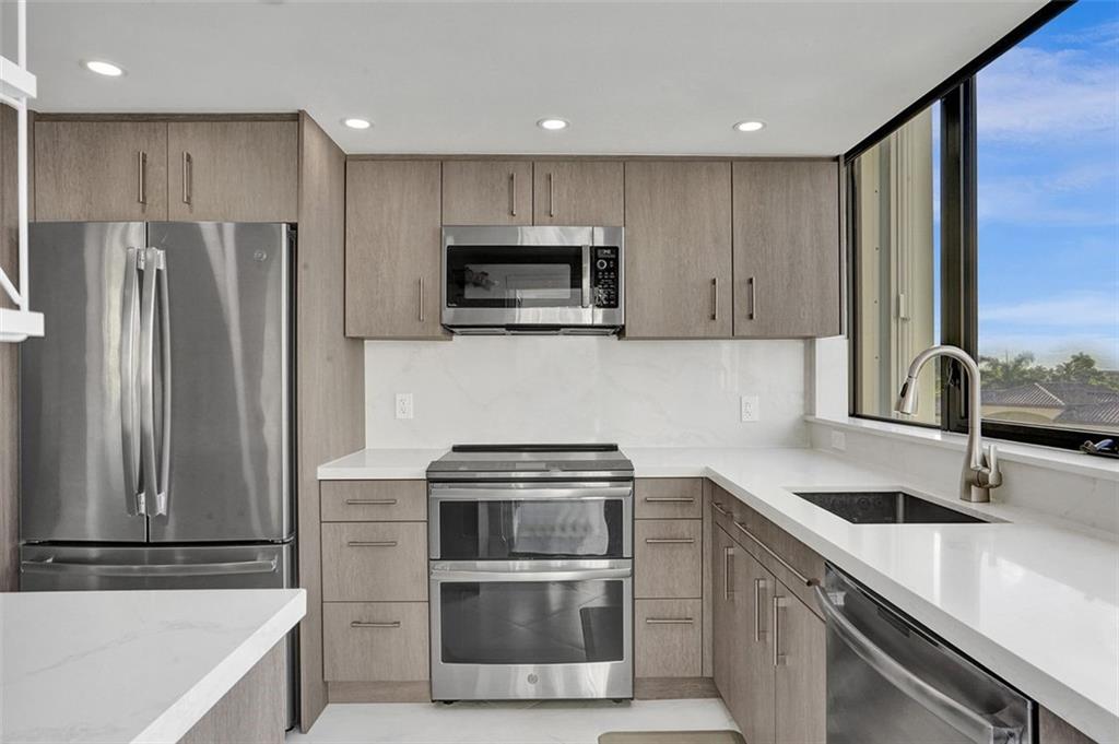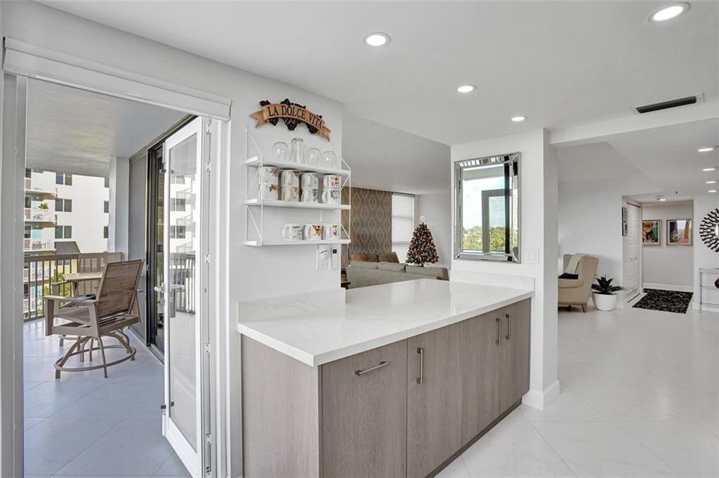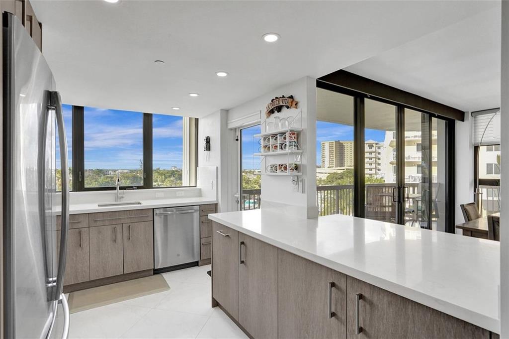BEAUTIFUL CORNER UNIT WITH 2 BALCONIES. ONE BALCONY WITH VIEWS OF THE CANAL AND THE SECOND SMALL BALCONY WITH PARTIAL OCEAN VIEW. COMPLETELY REMODELED INCLUDING THE ELECTRICAL AND PLUMBING. NEW CUSTOM MADE CABINETS THROUGHOUT. OPEN KITCHEN. NEW TILE FLOORING ALL ROOMS. QUARTZ COUNTERTOPS IN KITCHEN. WASHER AND DRYER IN UNIT. HURRICANE GLASS WINDOWS AND DOORS. 2 ASSIGNED PARKING SPACES 1 THAT IS COVERED, PET WELCOME UNDER 25 LBS. BOUTIQUE BUILDING OFFERS A RESORT STYLE LIVING, POOL AREA WITH BBQ'S, TIKI HUTS & WHIRLPOOL SURROUNDED BY LUSH LANDSCAPE OVERLOOKING THE CANAL WHICH LEADS TO INTRACOASTAL AND LAKE SANTA BARBARA. PRIVATE OCEAN ACCESS.