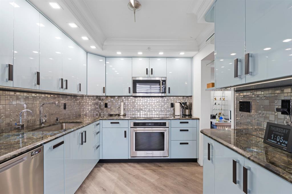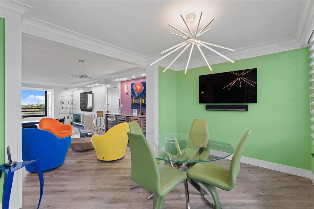 Panoramic views of the golf course with eastern exposure in this highly upgraded 5th floor unit in Promenade. European style kitchen with 2 refrigerators, multiple wine/beverage coolers and custom lighting throughout the unit. Spacious primary suite with generous closet space including large walk in closet. Primary bath includes dual sinks and oversized walk in shower. Custom interior doors and trim plus many more upgrades. Truly a luxury unit.