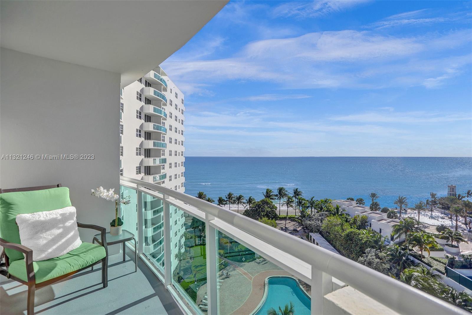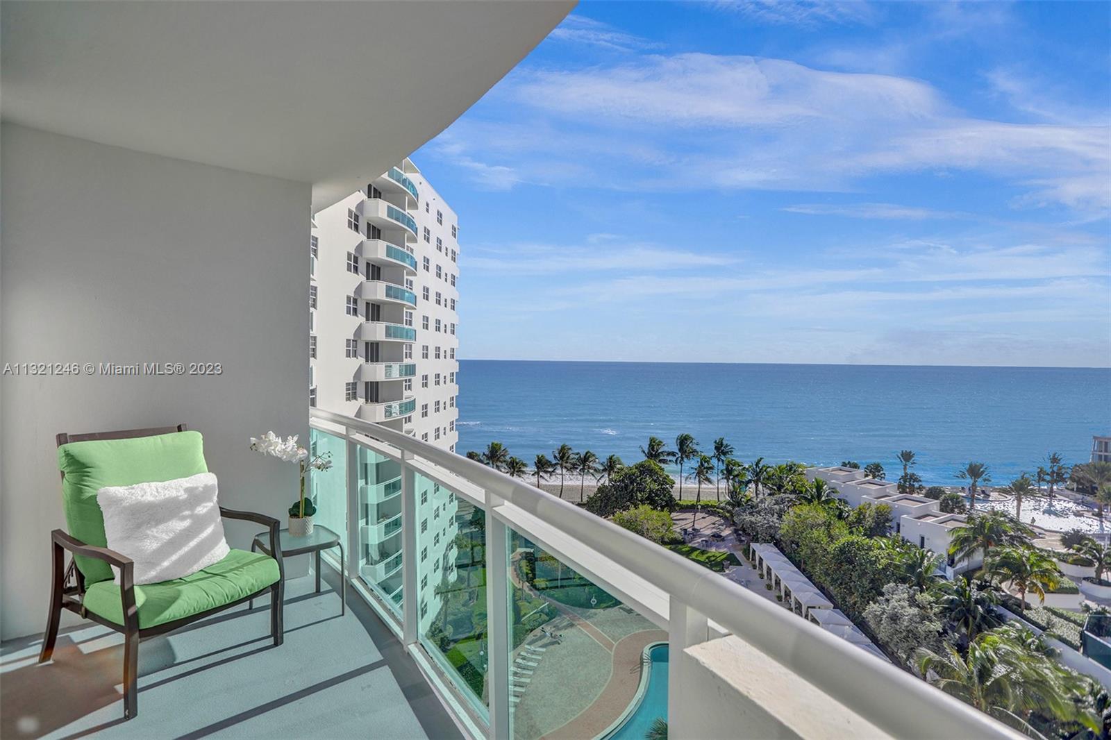 Completely Remodeled 2 Bd 2 BA plus Den. New floor plan, Contemporary kitchen, modern tile floors throughout, custom built-in closets lighting plus much more for you to enjoy your beachfront Lifestyle! Completely furnished and ready to move in. Large terrace with a direct Ocean and Pool area views will take your breath away! Hurricane proof windows. Experience The Residences on Hollywood - recently remodeled, one of the finest and most exclusive Luxury buildings on the Beach for the price value. Great amenities: Newly remodeled Resort style pool deck with lush palm trees, Jacuzzi, GYM, barbeque and Tiki Bar. Located just minutes away from Hollywood Boardwalk, Gulfstream Village, shops and restaurants. Publix to be built just across the street.