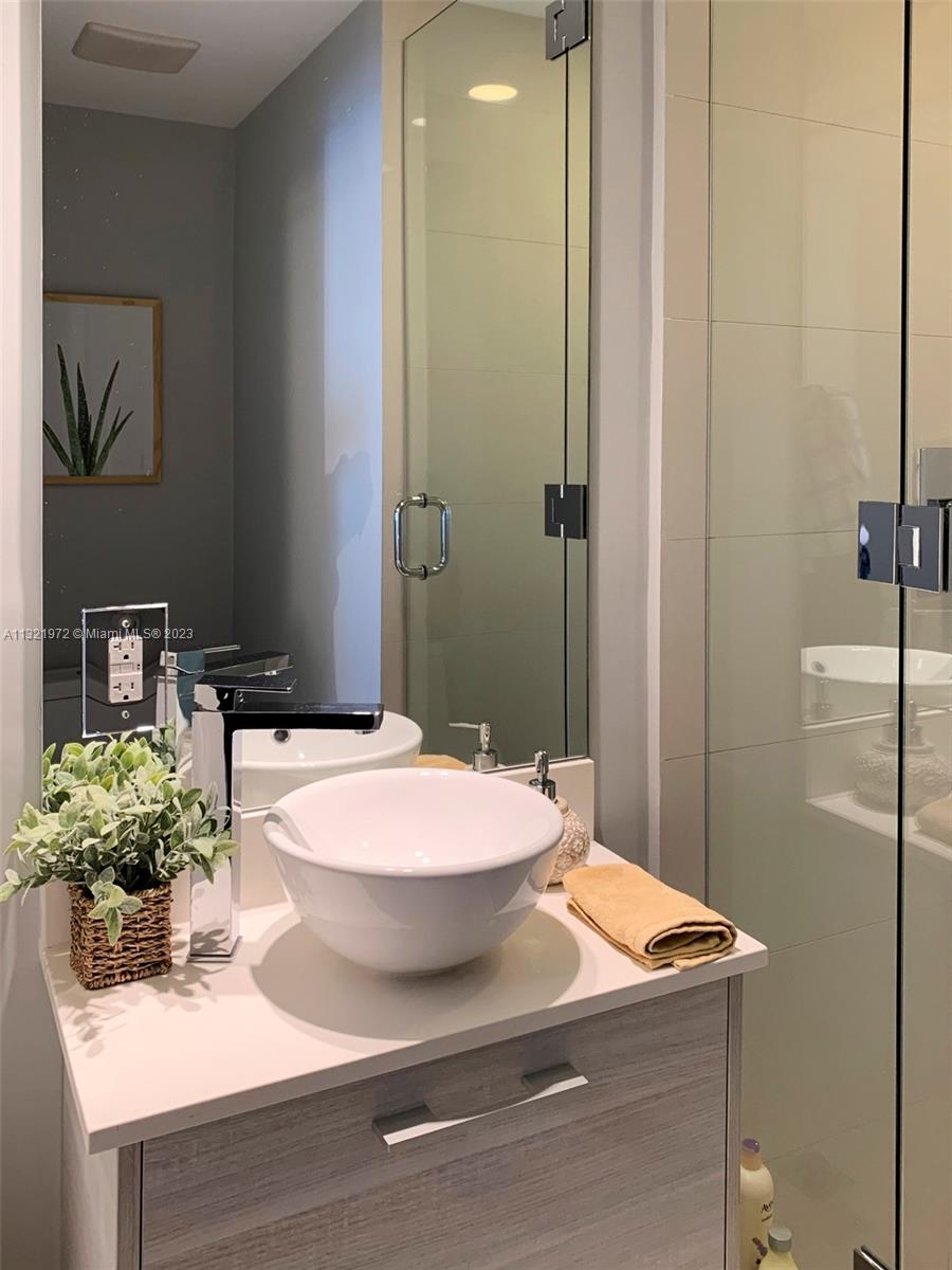c One bedroom+ 2 full bathrooms. Extra large terrace with ocean views to enjoy the sunrise. Built-in master closet. Move- in ready, already furnished! Paraiso Bay offers resort live, luxurious and elegant amenities: Bowling, two tennis courts, putting green & golf simulator, state of the art fitness center, spa with Haman, steam room, sauna, wine cellar, cigar room, movie theater, 100 feet diameter swimming pool, 24 hr concierge, valet service and more. Centrally located, just minutes from beaches, Miami intl airport, the design district, Wynwood, Downtown, Brickell & Entertainment