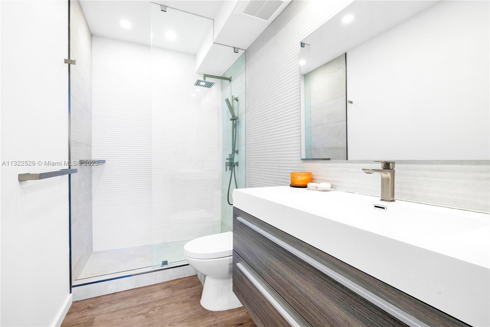Modern design with attention to detail in this renovated 2 bedroom 2 bathroom corner unit. Enjoy stunning sunsets against the backdrop of Biscayne Bay and the Miami Skyline from your private balcony. Beautiful Porcelanosa floors throughout, modern updated kitchen, appliances, and washer and dryer. Plenty of natural and bright lighting from every room, with views of Biscayne Bay and Miami Skyline. Spacious bedrooms and living space throughout. Unit can be sold furnished. Building has 24HR security heated pool and jacuzzi, fitness club, convenience store. No short term rentals - one parking space in the garage plus additional valet parking at a fee. Mirador 1000 is walking distance to local restaurants, parks, shopping, whole foods and more.