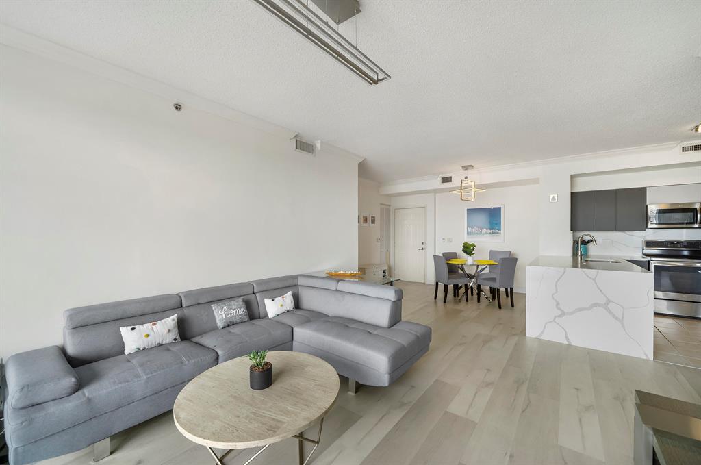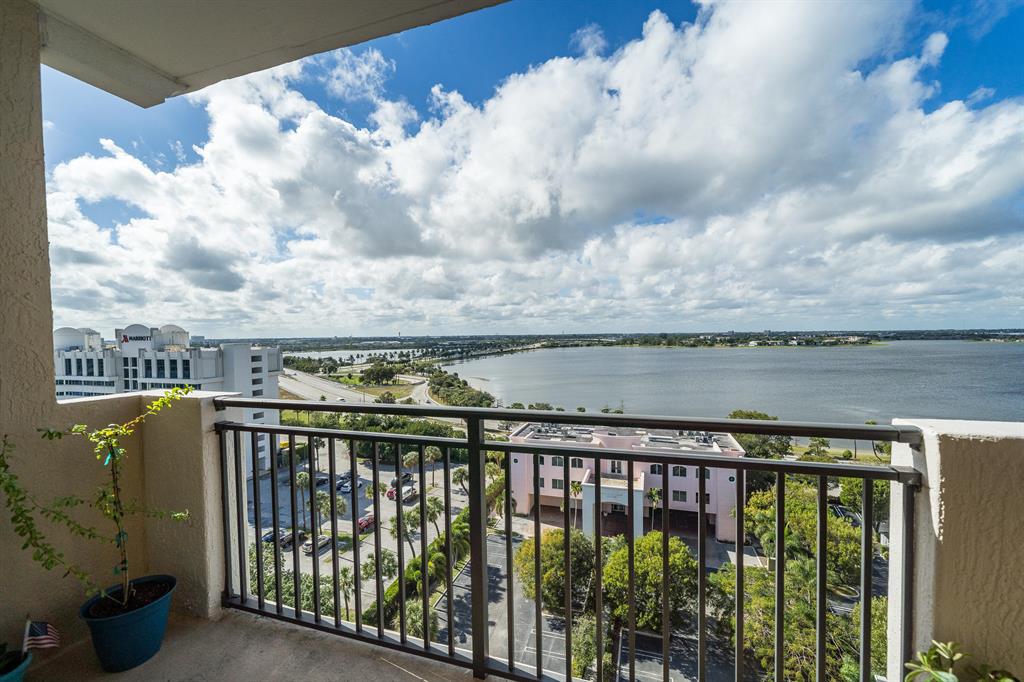 Gorgeous Direct Waterfront 2/2 condo on Clearlake West Palm Beach. Enjoy the amazing Florida sunsets from the 11th floor! This property has newer luxury vinyl, warm grey tones, an upgraded new kitchen with waterfall peninsula, Bosch quiet dishwasher, GE Refrigerator/Range, and crown molding throughout. Enjoy your chilled wine fridge and custom pull out pantry shelves. This is a split floor plan with two master suites with walk in closets in both bedrooms. The building has a beautiful lobby with a concierge and resort style amenities. Newer A/C and water heater. Garage assessment is being paid in full by Seller prior to closing.