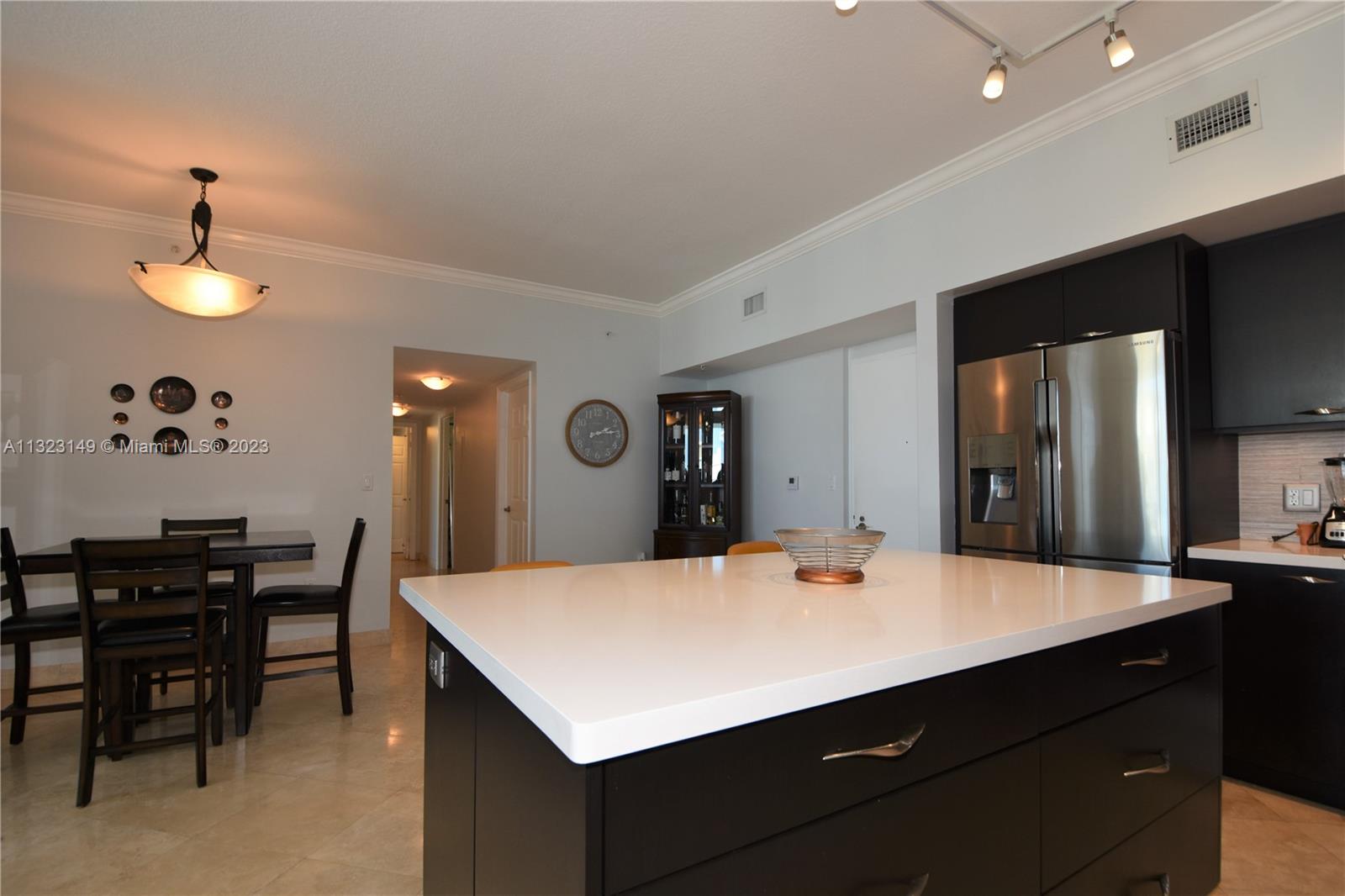Most desirable floorplan in building for sale!!! 10 feet ceilings, great layout. Remodeled kitchen and bathrooms. New vertical blinds. Marble floors in living room and kitchen area. NEW AC UNIT. Custom built-in clostes. Crown molding throughout the residence. 2 parkings spaces assigned. Walking distance to shops, restaurants and Hallandale Beach! Easy to show.