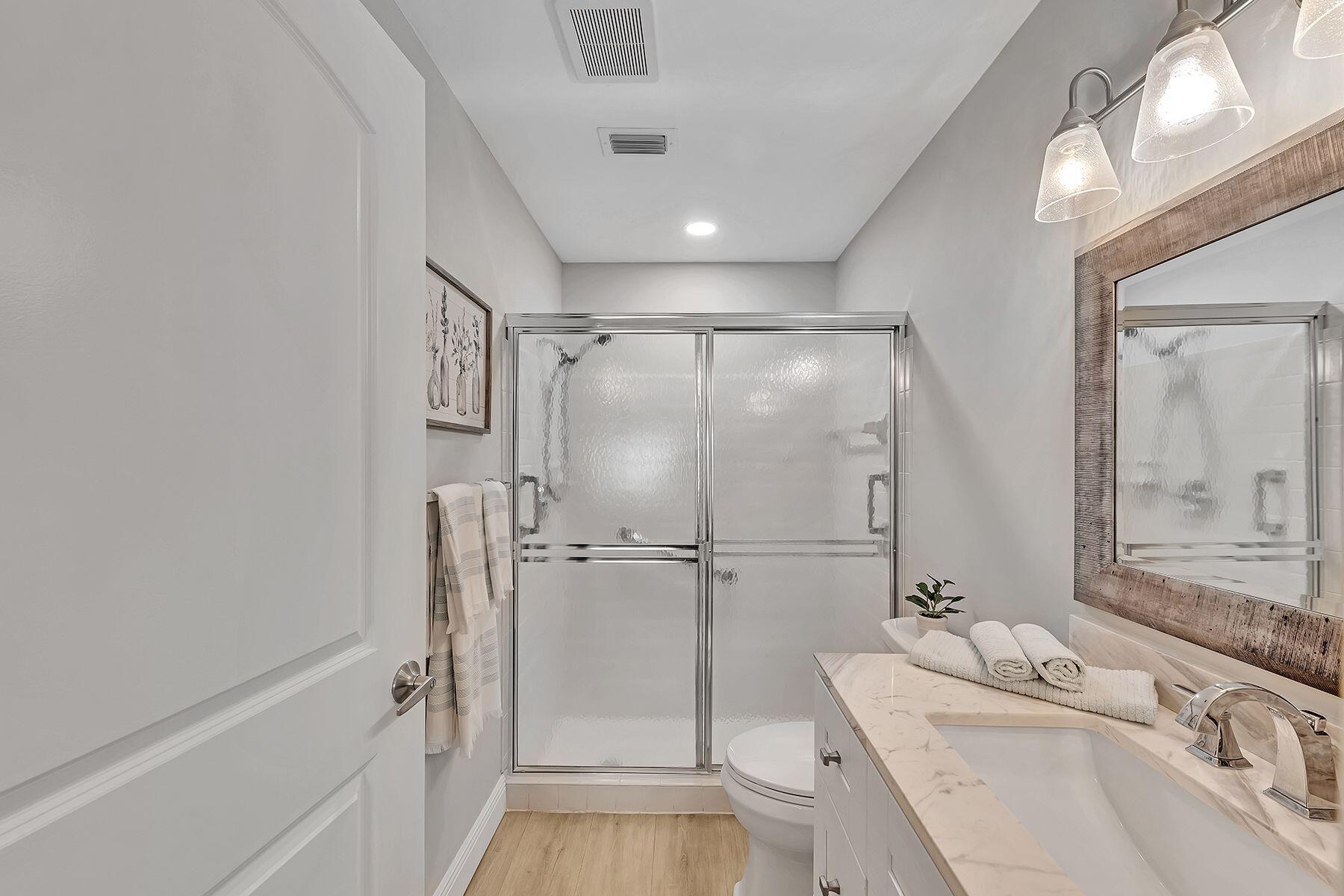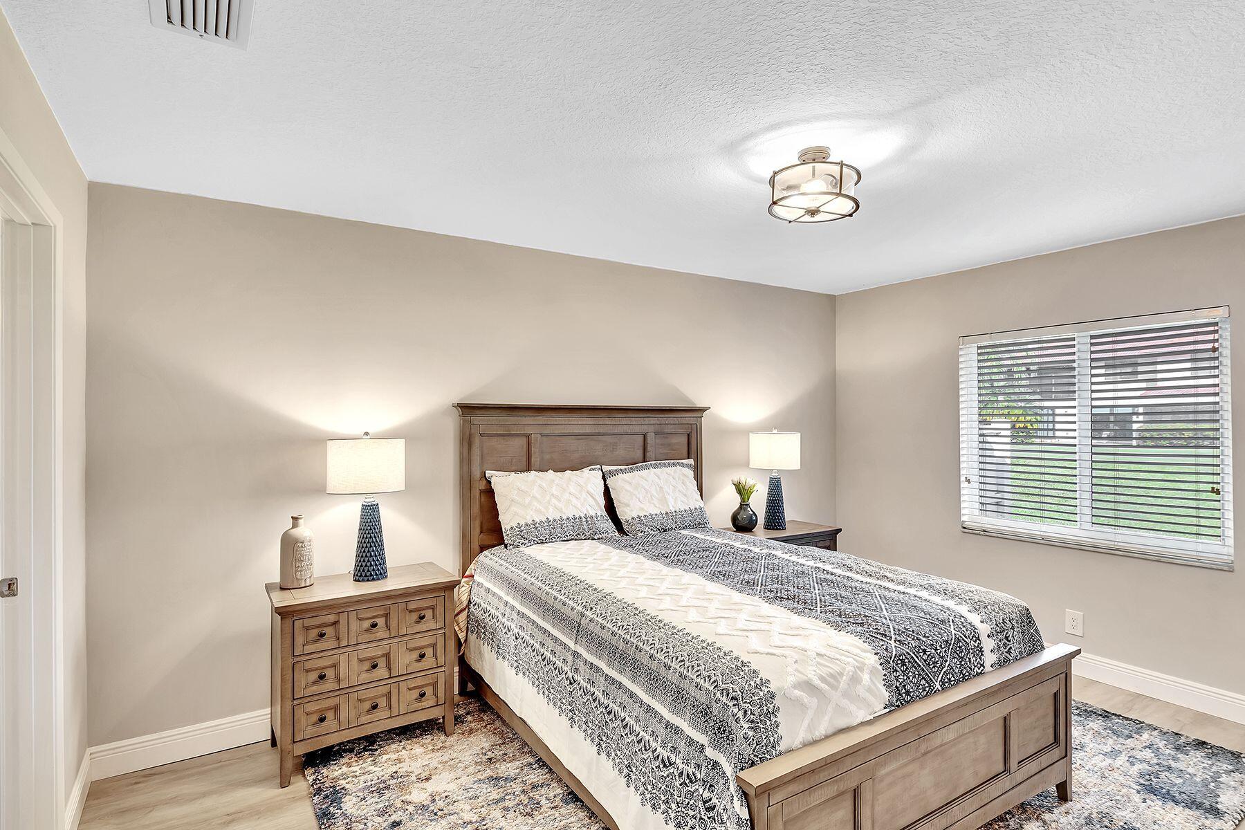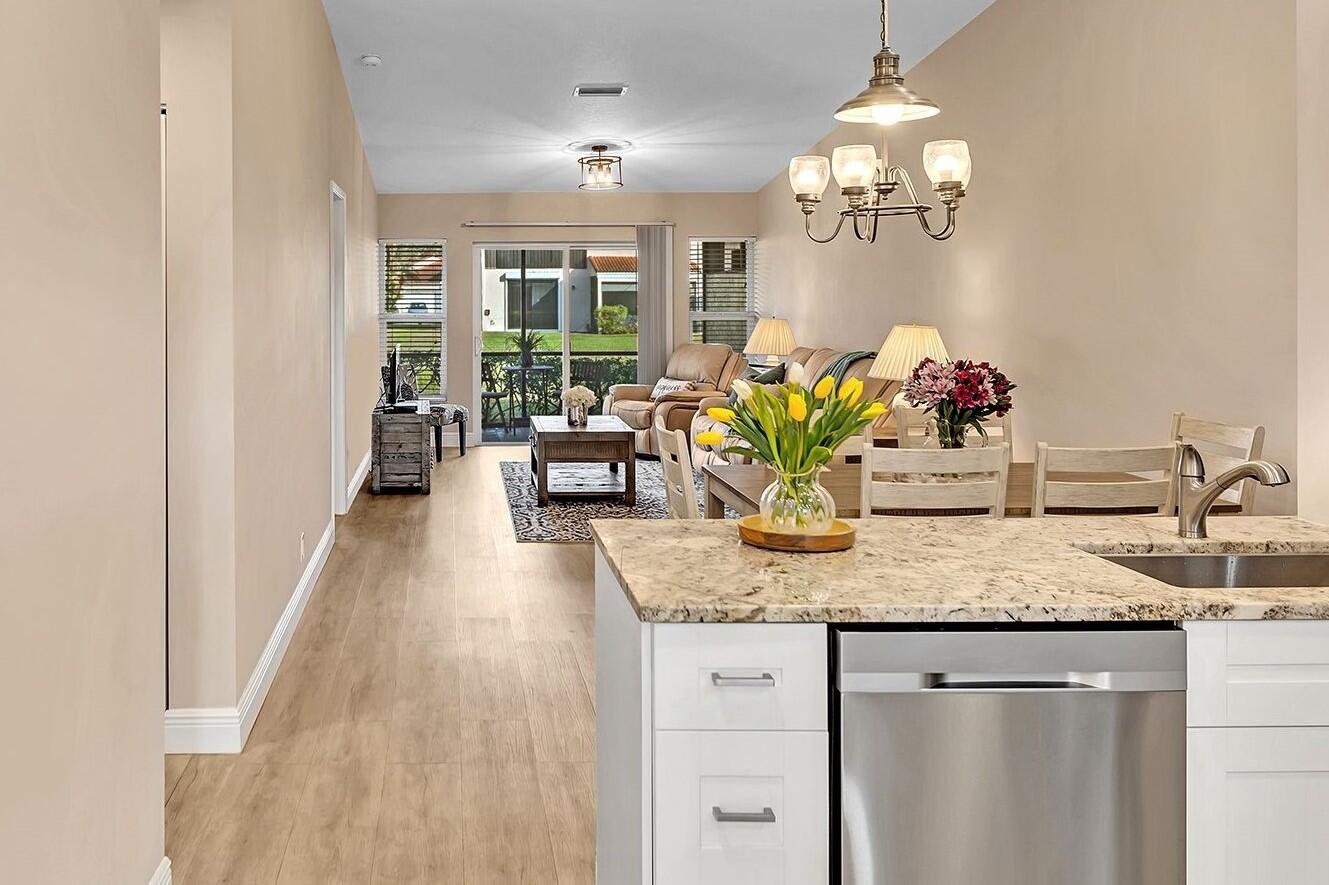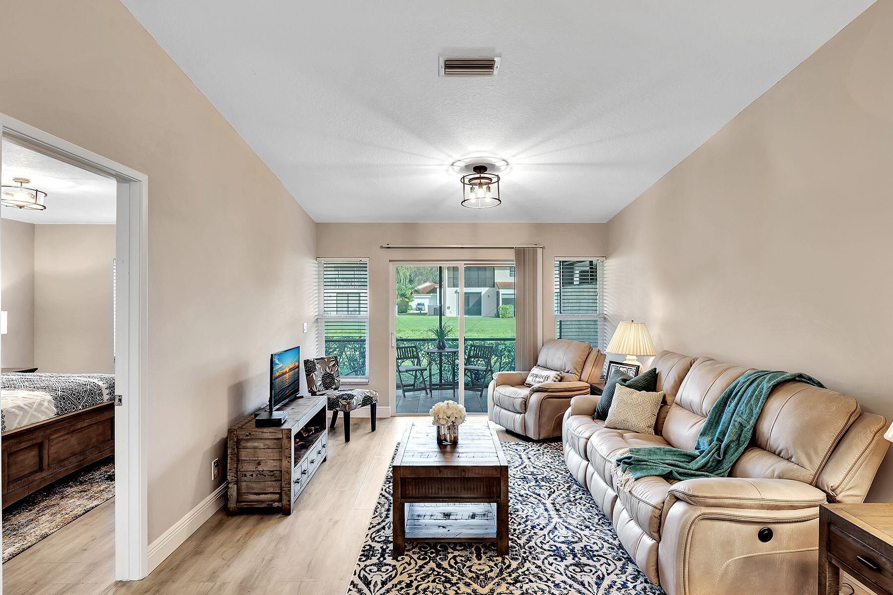 Enjoy living in a peaceful setting with tree lined streets and a multitude of amenities at Whisper Walk of Boca Raton. This 55+ community provides many opportunities to live an active lifestyle; pickleball, tennis, community pool and hot tub, clubhouse, library, walking trails, plus the security of 2 gated entrances. This 2 bedroom, 2 bath unit has been completely updated with white cabinets, granite counters, stainless appliances, lighting fixtures, continuous wood look flooring, interior doors and impact windows. Full size washer and dryer and large screened in patio, are added bonuses!
