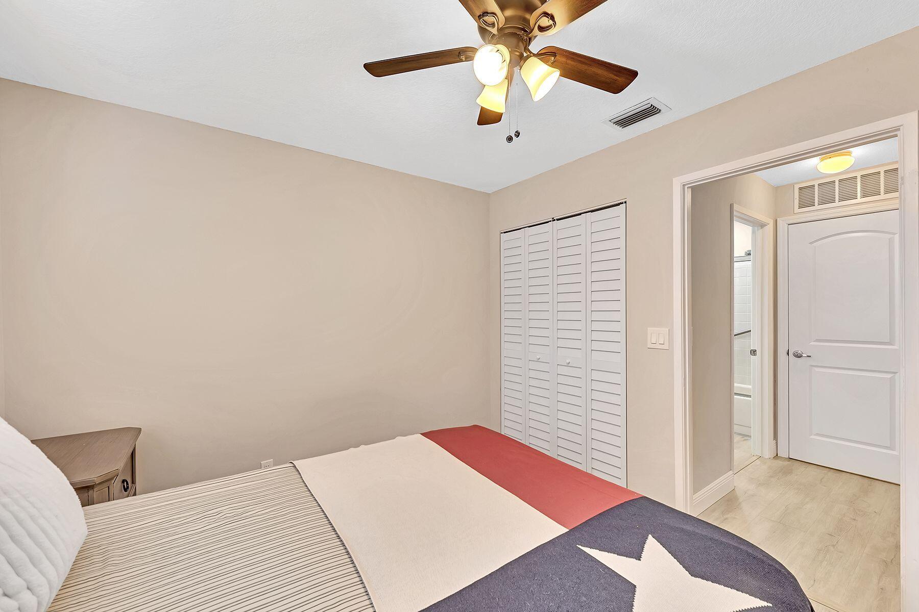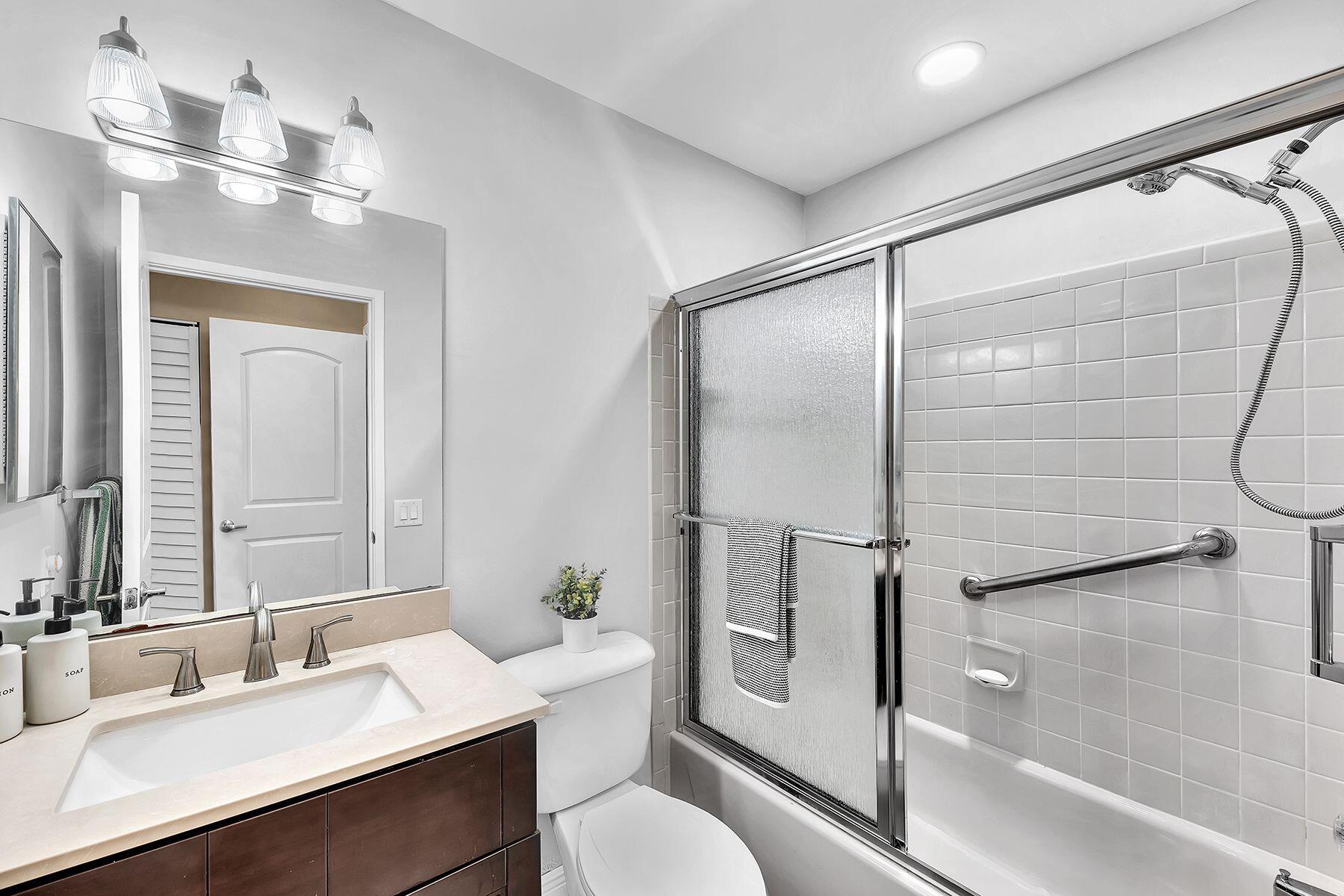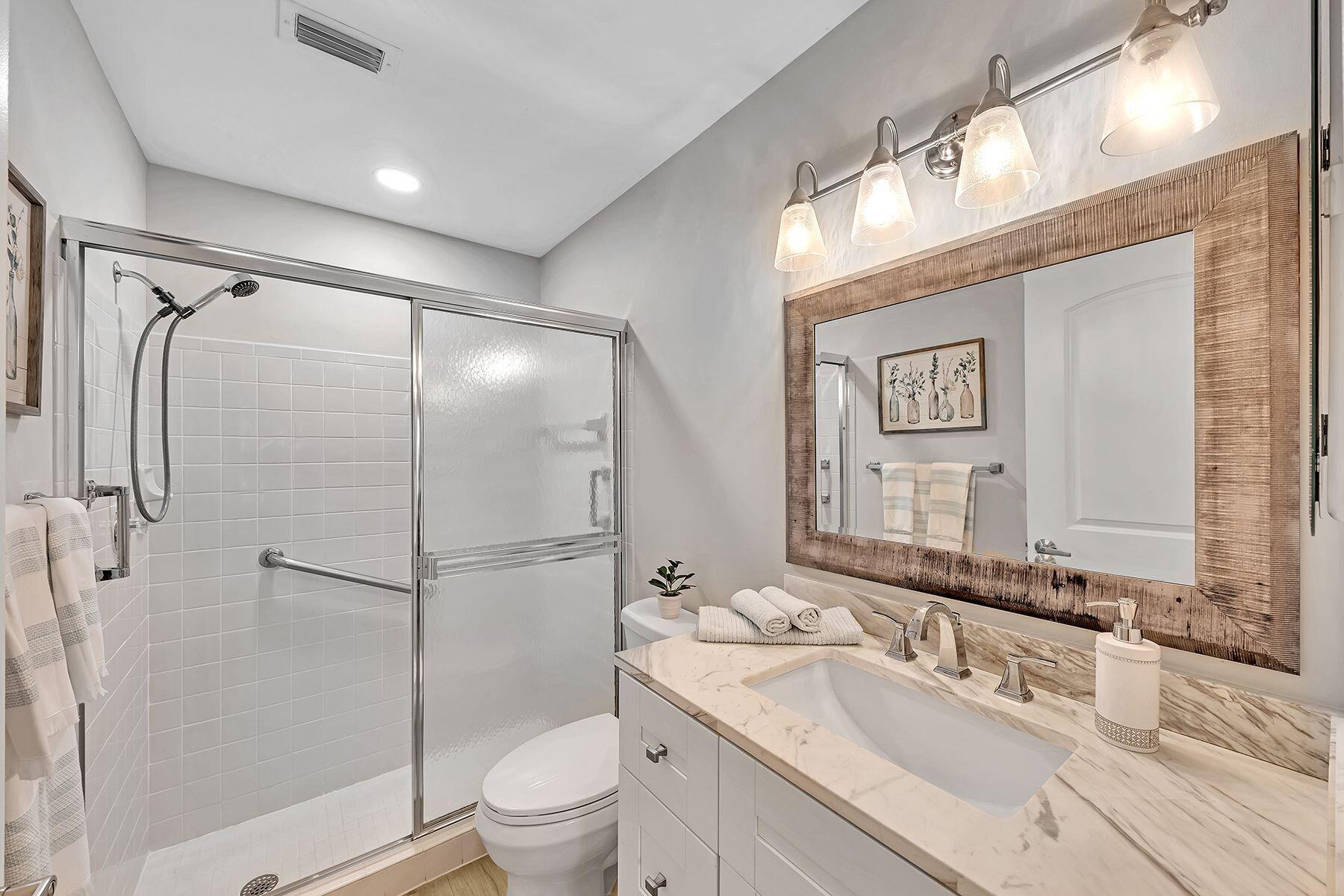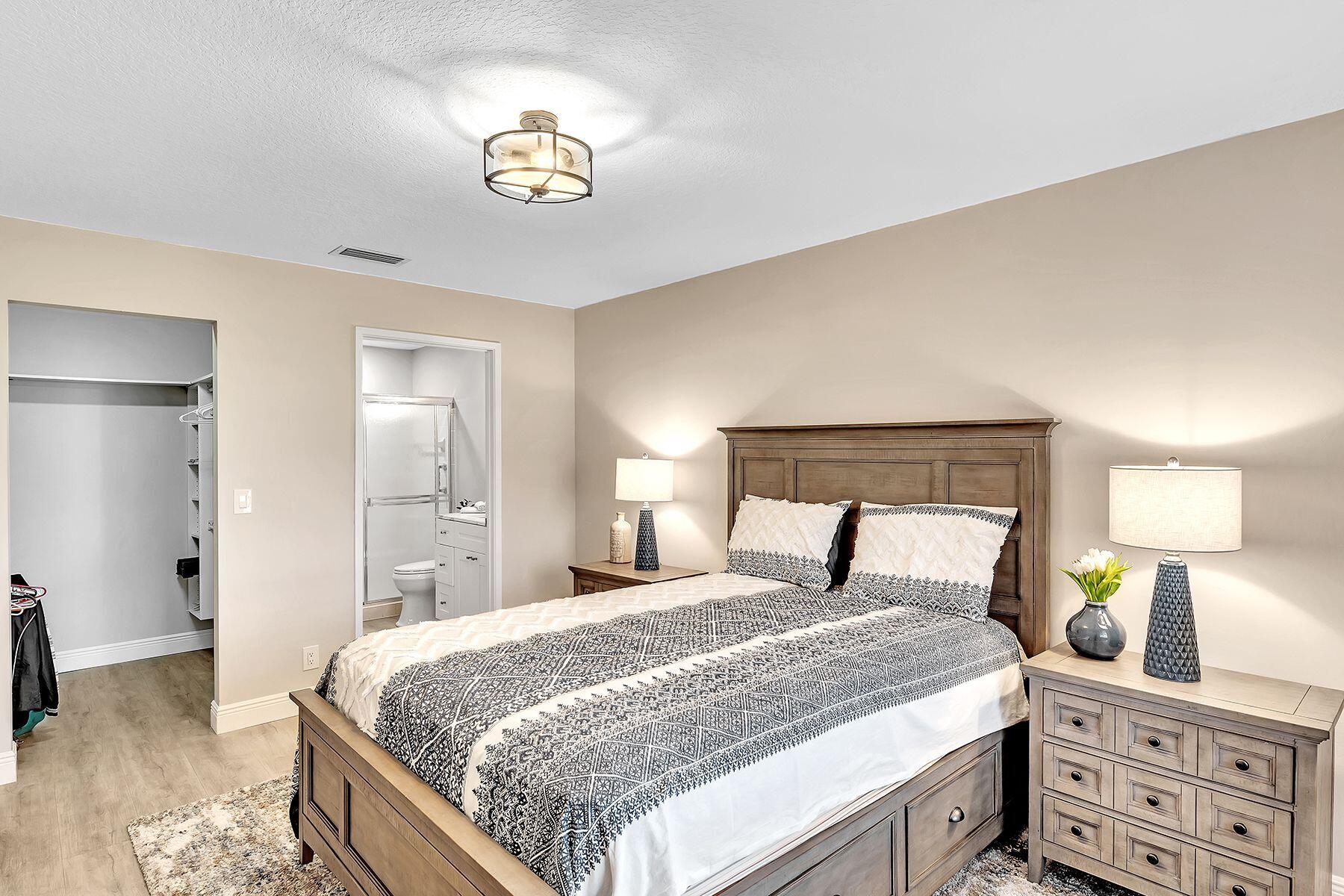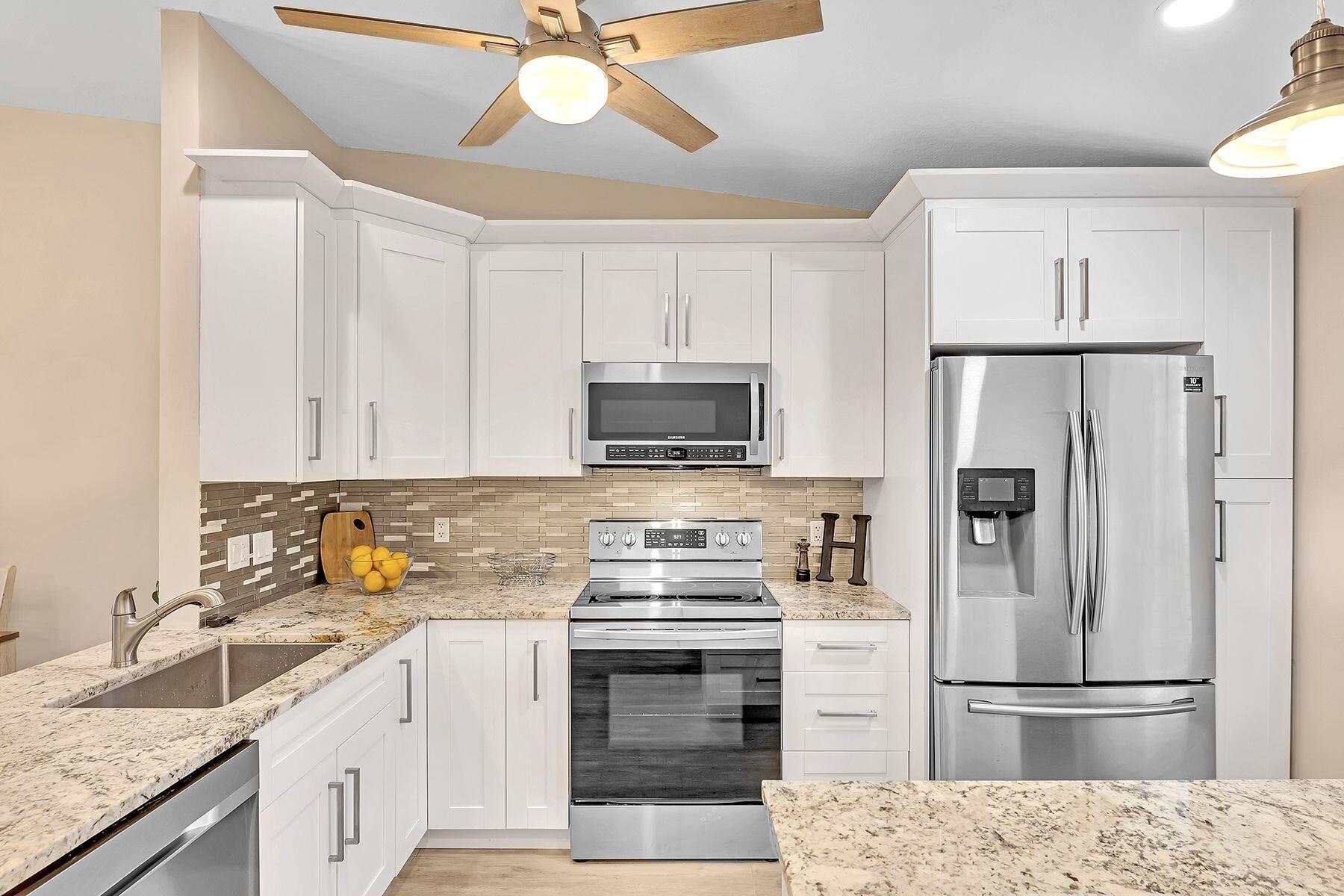 Enjoy living in a peaceful setting with tree lined streets and a multitude of amenities at Whisper Walk of Boca Raton. This 55+ community provides many opportunities to live an active lifestyle; pickleball, tennis, community pool and hot tub, clubhouse, library, walking trails, plus the security of 2 gated entrances. This 2 bedroom, 2 bath unit has been completely updated with white cabinets, granite counters, stainless appliances, lighting fixtures, continuous wood look flooring, interior doors and impact windows. Full size washer and dryer and large screened in patio, are added bonuses!