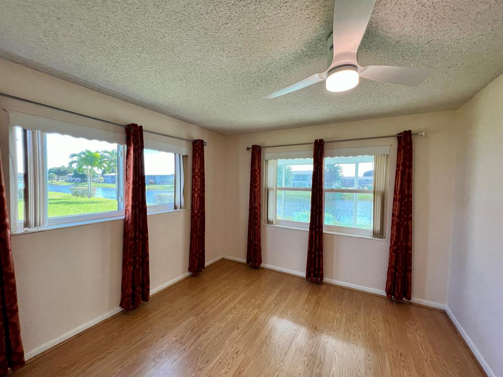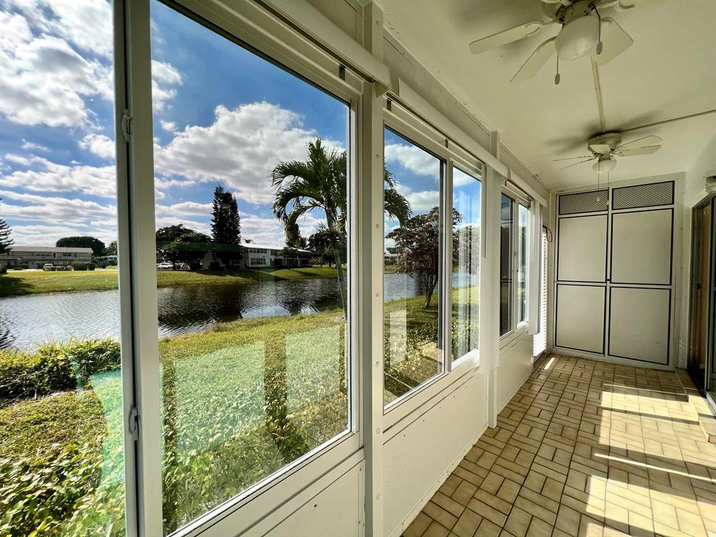 Spectacular waterfront 2/2 on desirable Chatham Isle in 55+ Century Village! Move-in ready FIRST FLOOR CORNER condo with beautiful views & updates. The kitchen features white cabinets and upgraded appliances including a dishwasher. Two updated full baths each with a step-in shower. Updated flooring, white tile in living areas and wood laminate in bedrooms. Impact windows and new front door. Updated & enclosed lanai provides attractive extra space with impact windows, white blinds, and ceiling fans. Central AC. Beautifully maintained building and financially sound association. Sold AS IS. Century Village is a 55+ community with so much to offer...