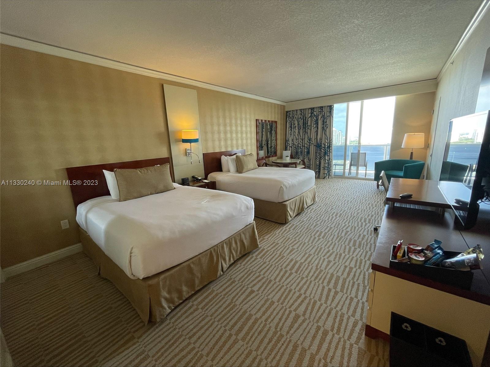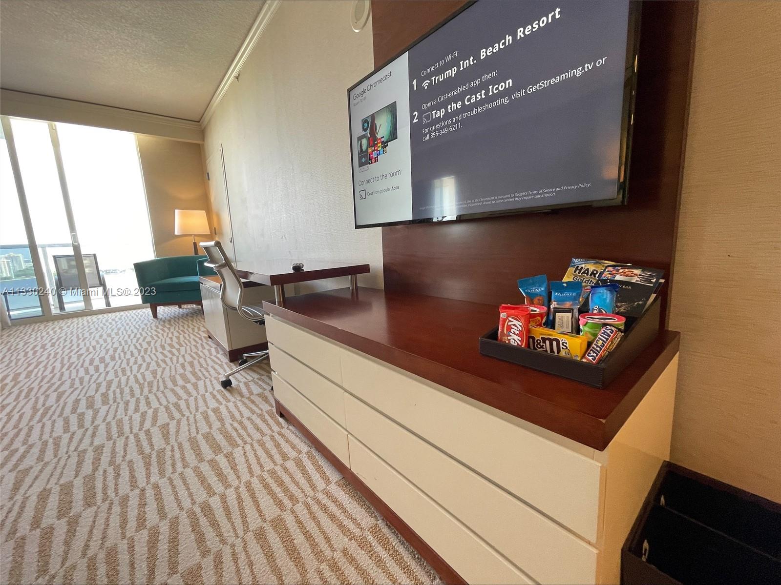 UNBEATABLE & EXCLUSIVE OCEANFRONT LOCATION! Beautiful oversized studio overlooking the intracoastal, Ocean, pool, tennis & soccer courts in the beautiful Sunny Isles Beach, offering ample space and designer's details for an exclusive luxury living experience through the Trump International hotel rental program, generating over $32,000 in 2022 after expenses. This amazing unit its been fully furnished by the T.I. hotel & accents include: master bedroom w/king-sized bed, designer's working station (desk) & a super spacious walk-in closet, master bathroom w/double vanities & deep soaking tub, fully-equipped furnished balcony overlooking the Atlantic Ocean & Intracoastal Waterway with E, N & W views. Just across the street from the best restaurants, bars & best shopping experiences.