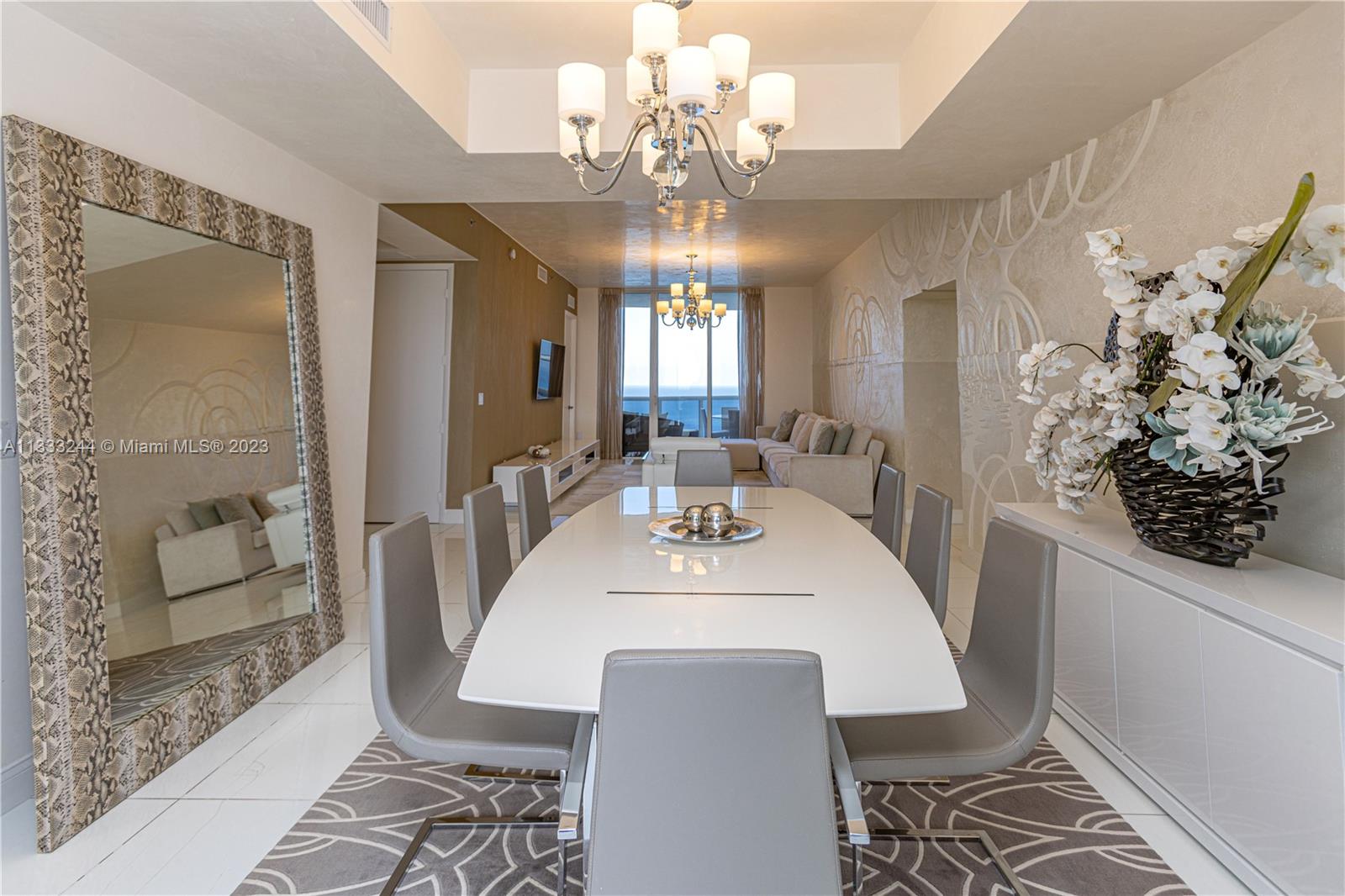 Priced to sell fast! Amazing views from all 4 balconies. Ocean and Intracoastal. Very bright flow thru Used rarely as a second home, impeccable. 3 bedrooms + 3 and 1/2 baths. The floor plan is very spacious. Private elevators. Lots of upgrades. Professionally decorated, selling furnished as is. Great location on desirable Sunny Isles Beach, close the restaurants, shoppings, Aventura mall as well Ball Harbour mall. Buinding is in the process of being completely renovated. Seller will pay assessement in full at closing. Lots of upgrades, subzero refrigerator, granite kitchen countertops, customized closets, window treatments and more. Restaurant and beach service. A must see.