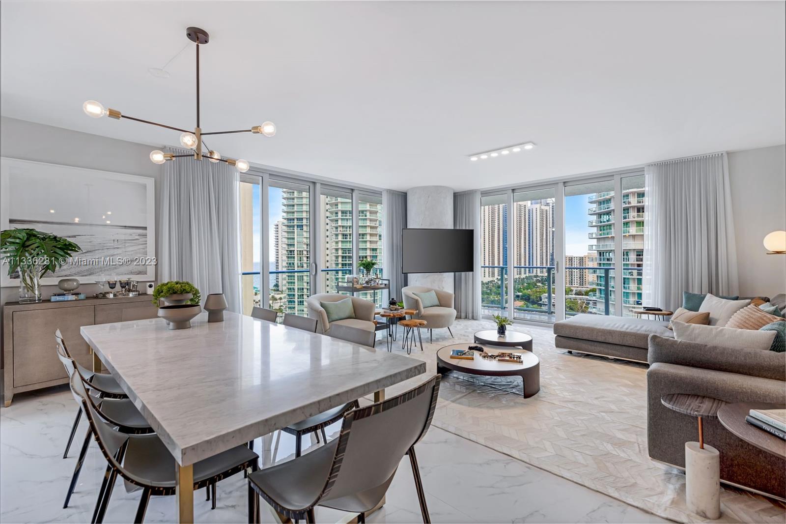 Spectacular fully furnished LUXURY apartment, corner unit at the best line at Parque Towers with the most stunning views of the Ocean and Intracoastal in Sunny Isles Beach. This unit has an entire marble floor, Bosch & Subzero appliances, Italian Cabinetry, a gourmet kitchen, a large laundry, and 90-degree balcony that connects to the living area, master, and second bedroom! The apartment is professional decor corner unit and has a king size bed, a queen-size bed, and 2 full trundle beds. Amenities include 4 pools, 1 infinity edge pool, sauna, gym and jacuzzi, concierge service, party room, business center, kids room, beach club service, guest suites & much more. You will fall in love with all the details!! Must see it! Ready to move in!!