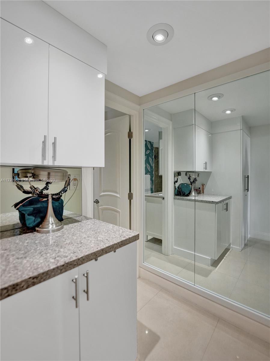 Absolutely gorgeous Turn Key 2/2 condo w/ amazing view of the Intercostal. Completely remodeled and tastefully furnished, this very bright unit has it all. Featuring a very nice open kitchen with modern white gloss cabinets, stainless steel appliances and granite countertops and a bar area. Beautiful bathrooms. Tile flooring throughout. Stretch ceiling. Master bedroom w/ remote control blinds, luxurious bedroom set w/ electric massaging mattress. Walk in closet. High impact windows & sliders. Washer and dryer in unit. Nice tiled balcony. Secured lobby. Covered parking #84 away from salt damage . Enjoy the pool while watching boats go by on the intracoastal, well maintained building, exercise room, community room and Ocean/Beach Access. THIS IS ONE OF A KIND CONDO WITH AN AMAZING VIEW !!