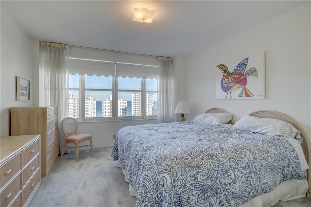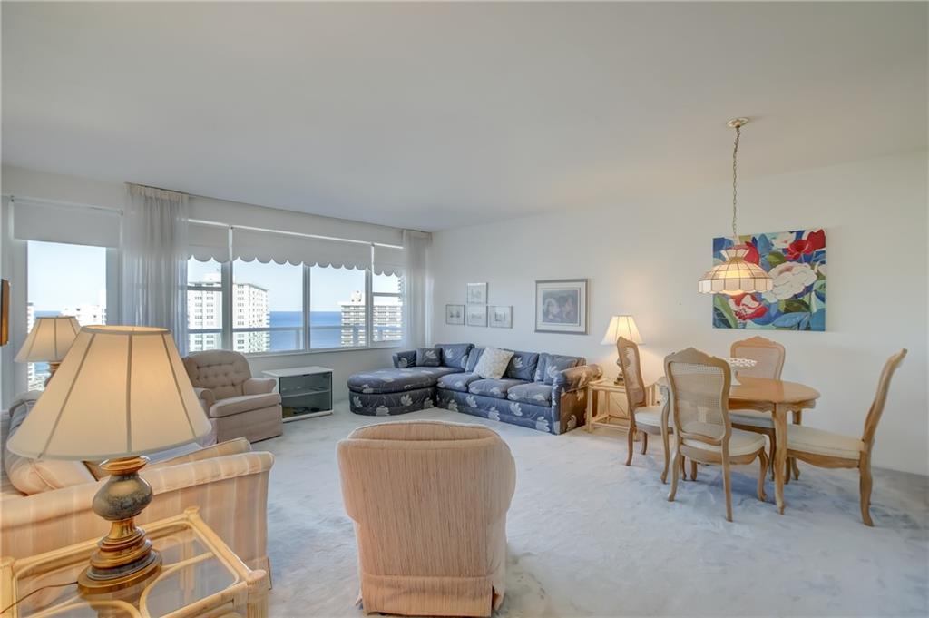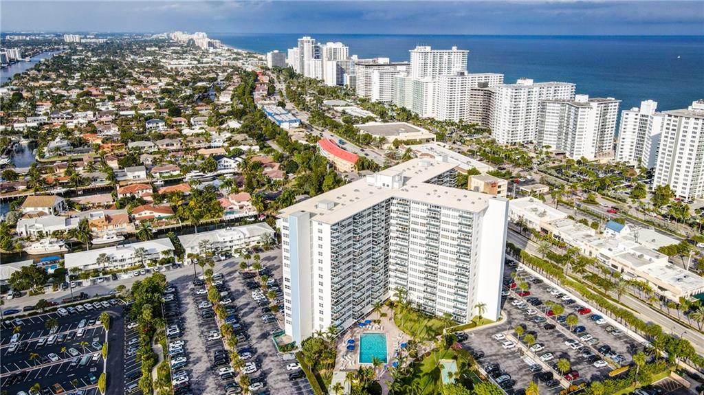 STUNNING DIRECT OCEAN VIEWS in this top floor penthouse large one bed/one bath. New roof was just completed along with major multi-million $$ building upgrades. All building work is paid for and fully funded reserves. Original Mid-Century modern design with the Kitchen and bath both CLEAN and in good condition. Best deal in all of Broward County to be this close to the beach with full amenities!! 24 hour security, year round heated pool, bocci ball court, separate clubhouse on the Intracoastal. A 5 acre oasis in the middle of walking distance to everything - restaurants, retail, grocery, entertainment, golf, boating. 55+ community. Cable TV & internet included in $677 monthly maintenance. Come enjoy the good life.