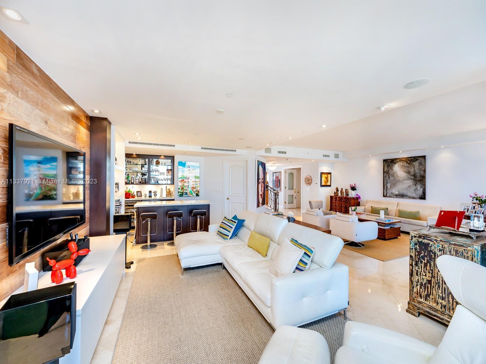 The very best of Key Biscayne and a rare opportunity! Very few of these spacious 4,200 SF two level homes were built at the Ocean Club. The residence offers the comfort of a large home combined with luxury beachfront resort amenities. Throughout the open floorplan, enjoy spectacular views of beautiful sunrises over the ocean and unobstructed sunsets that illuminate the island, Bill Baggs State Park and the Biscayne Bay. A private elevator opens to a spacious and bright first floor that is ideal for entertaining with two separate living areas, formal dining, elegant bar, powder room, oversized eat in kitchen and a bedroom suite. The second floor offers three suites (a fifth bedroom is possible), family room and conveniently located laundry.