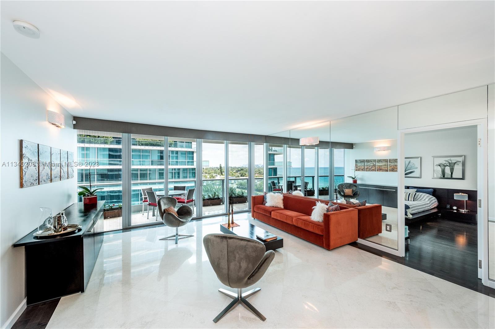 BEAUTIFUL BEACHFRONT CONDO! This amazing 2 Bdrm+Den & 2.5 Bathroom waterfront property offers a great layout with a clean, crisp contemporary design. Upon entry you're welcomed with a lovely foyer entry, den, awesome kitchen with Miele & SubZero appliances, amazing counter space & snack bar, bright-airy living & dining, half bath, a master & junior suite, stunning master bathroom with spa tub, washer/dryer & an oversized balcony where you can relax & enjoy the sea breeze & the beautiful sunset. Located in the fabulous Azure Condo where residents may enjoy world class amenities including spa, sauna, massage and treatment rooms, heated pool, fitness center and beach service! At walking distance from Bal Harbour shops, restaurants & more! CABANA AT THE POOL LEVEL IS INCLUDED IN PURCHASE PRICE