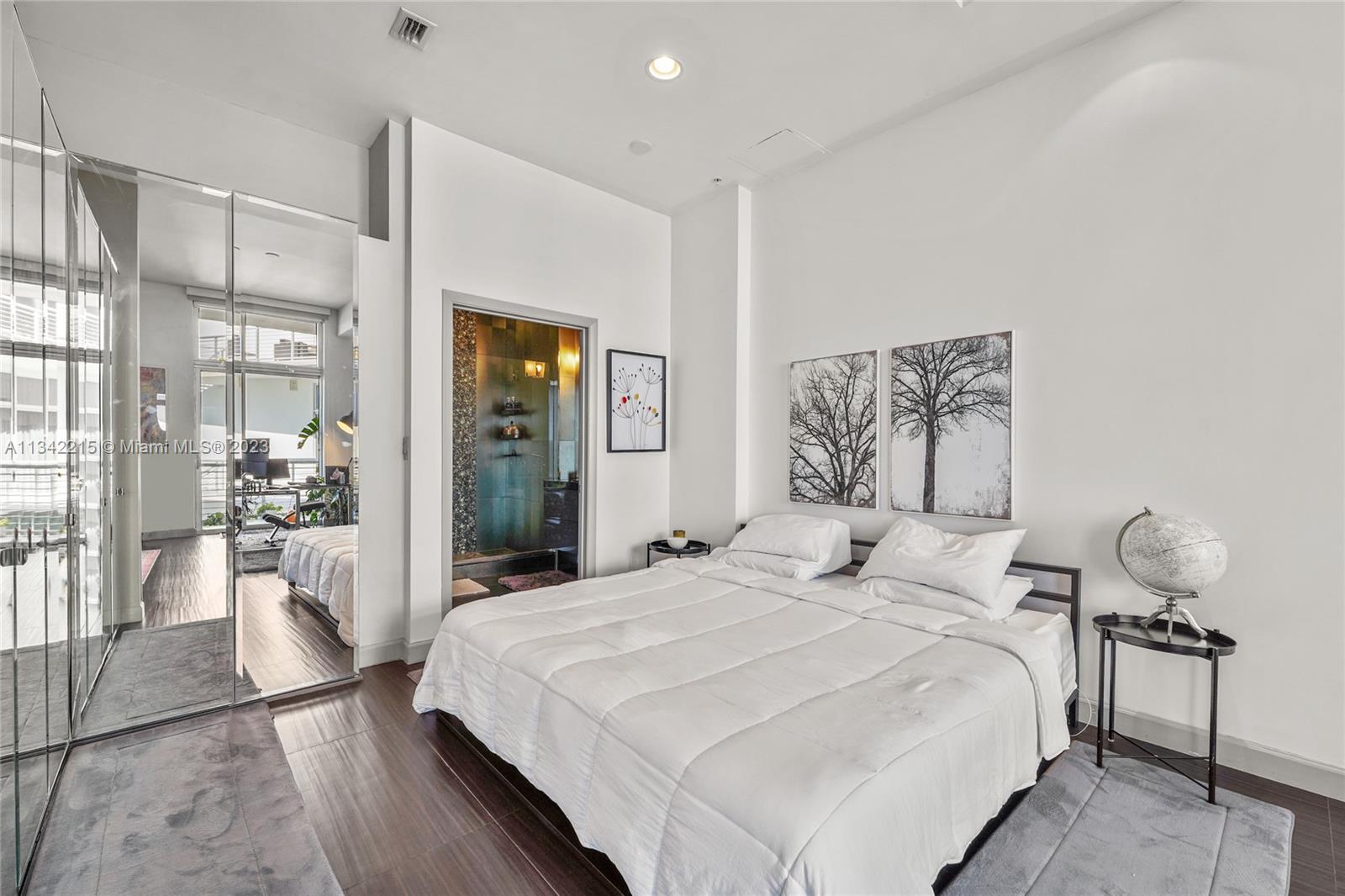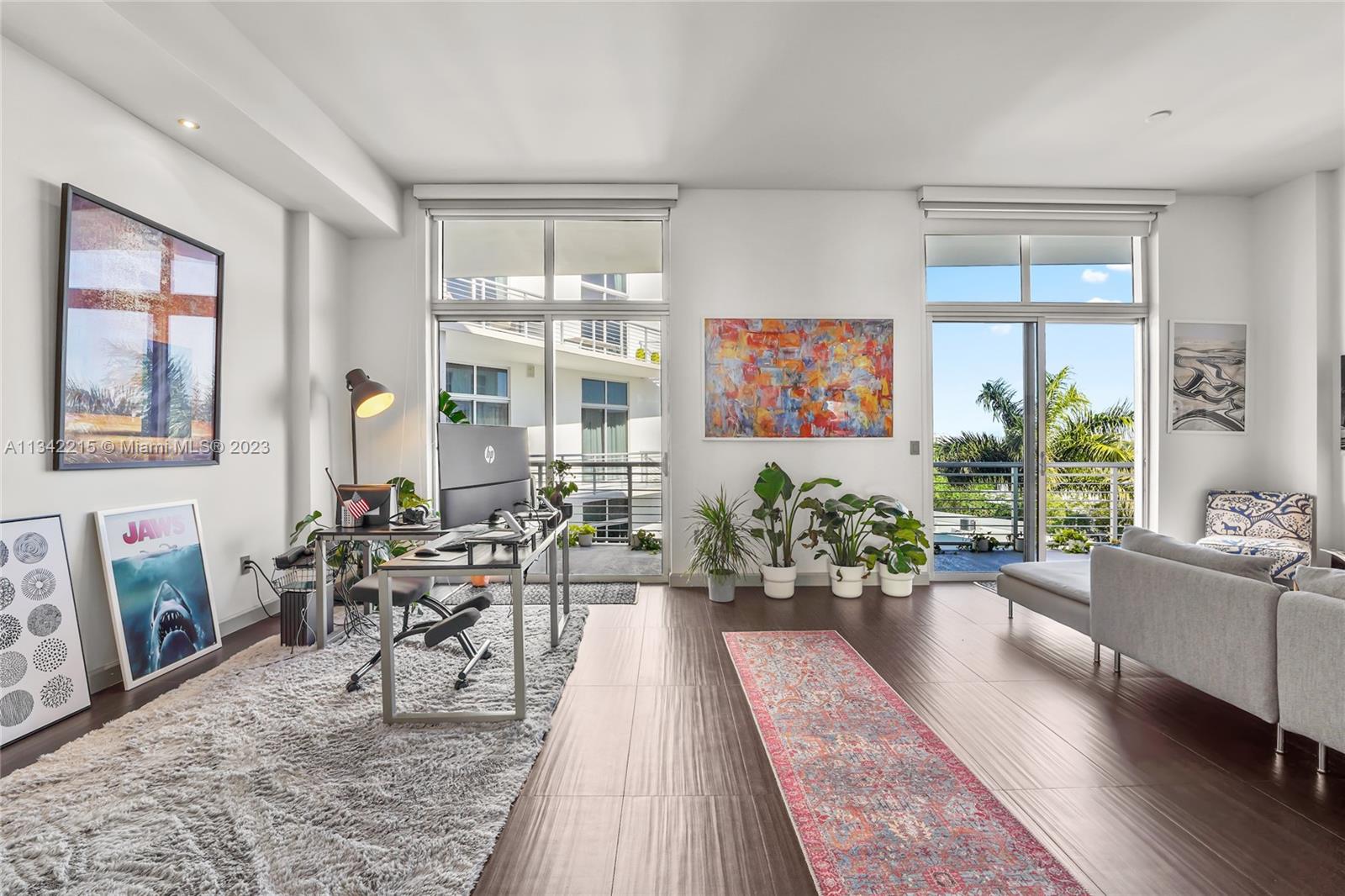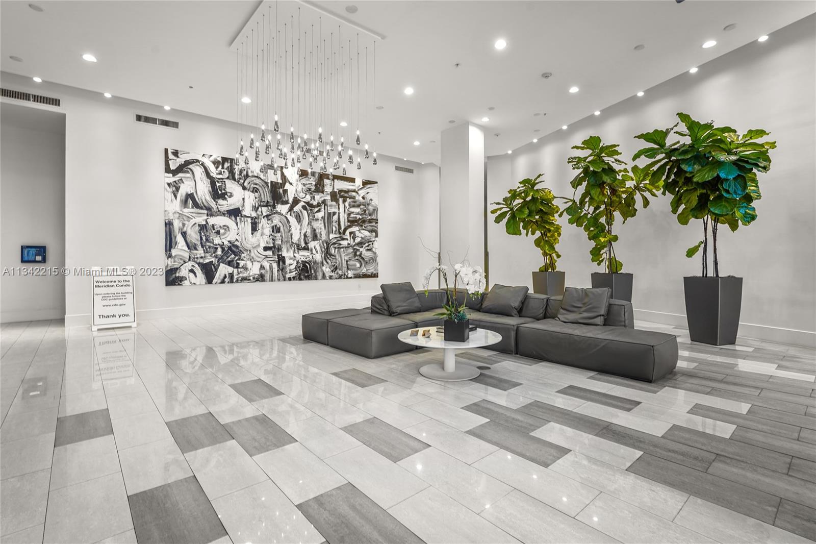 Rare designer loft at the modern, elegant & exclusive Meridian Condo. Featuring 11 ft ceilings, nearly 1000 SF of open living space facing golf course/garden views & a 200+ SF balcony. Floor to ceiling windows, 2 balcony entrances & lots of natural light. Every aspect of this unit is high end, from the appliances & furniture (can be included) to the meticulous renovation. Extra bathroom, full size Washer/Dryer & 1 XL garage space. Bldng feat. gorgeous rooftop pool, jacuzzi & sun deck w/ panoramic views, gym & 24 hr concierge/security. Amazing Pied-a-terre or investment property w/ great cap rate. Excellent tenant leasing for $5200 through May & willing to stay if buyer chooses. Spectacular location in the heart of Miami Beach, yet quiet & peaceful beside tranquil golf course.