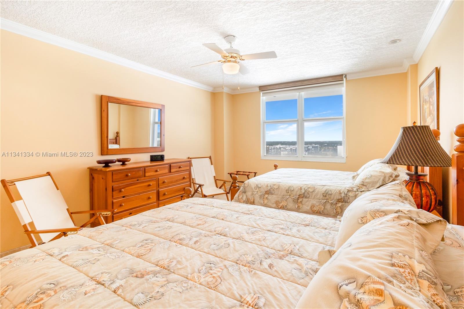 Magnificent beach penthouse with open views of the skyline, intracoastal and the Atlantic Ocean. Turn-key, fully furnished ready to move in or to be rented right away. Valued for its location and beach access, this unit is perfect for investment, as a primary or second home. It features impact windows as well as hurricane shutters, comfortable large furniture, 2 queen beds, washer/dryer combo inside, a half bathroom and ample closet space. The unit comes with a parking spot that is spacious enough to fit two cars next to each other or an extra-large SUV. Sea Air offers great amenities for families-Pool, entertainment rooms, gym, a restaurant, a library, open area for sunning or lounging, and a dedicated staff.