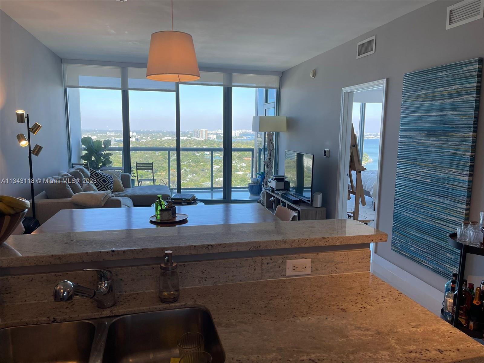 LIVE OR INVEST! It is your call!! Absolutely breathtaking views from this 26th floor unit! Beautifully kept by a great tenant, willing to stay for 3rd year lease, or may leave with 45 days notice. Floor to ceiling high impact glass! 1 bed/1 full bath/1 half bath. BRIGHT and SPACIOUS! Porcelane white floors all over. Custom made walking closet. Blackout shades in the bedroom. Blue Condo offers: state of the art GYM, Pool, Sauna, Game Room, Theater, Bicycle storage, Dog Park, Kids room, Party room, Business center, Management on site, etc. The unit comes with 1 parking space, 1 valet and 1 storage. Incredible location, close to the coolest areas of Design District and Midtown, restaurants, shops, minutes driving to the beaches...it is a pleasure to show!!