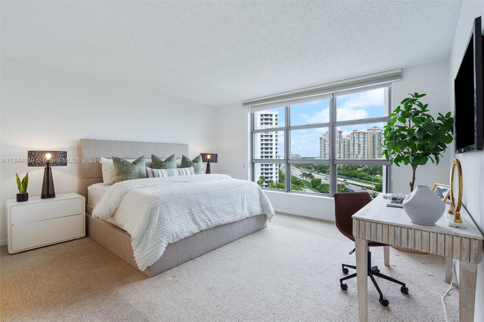 **BEST PRICE PER SQFT IN THE BUILDING**THIS STUNNING 1,361 SQFT FOOR PLAN, TWO-BEDROOM, TWO-BATHROOM CONDO OFFERS LUXURIOUS LIVING AT ITS FINEST. ENJOY MARBLE FLOORS IN THE LIVING ROOM, PLUSH CARPET IN THE BEDROOMS, AND A BEAUTIFUL KITCHEN WITH QUARTZ COUNTERTOPS. YOU'LL LOVE THE WALK-IN CLOSETS, SHADES WITH BLACKOUTS, AND IN-UNIT WASHER/DRYER. PLUS, THE BALCONY OFFERS BREATHTAKING VIEWS OF THE TURNBERRY GOLF COURSE. ENJOY ONE PARKING SPACE, VALET, AND STORAGE, ALONG WITH ACCESS TO A+ SCHOOLS, THE AVENTURA MALL, AND THE BEACH. BUILDING AMENITIES INCLUDE A GYM, POOL, JACUZZI, TENNIS COURTS, VALET, SAUNA, AND SECURITY. DON'T MISS THIS UNPARALLELED OPPORTUNITY FOR LUXURY LIVING. 2 STORAGES INCLUDED WITH THE UNIT.