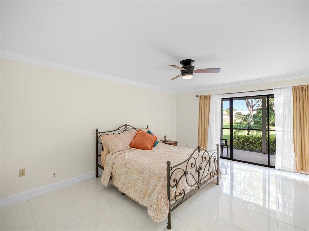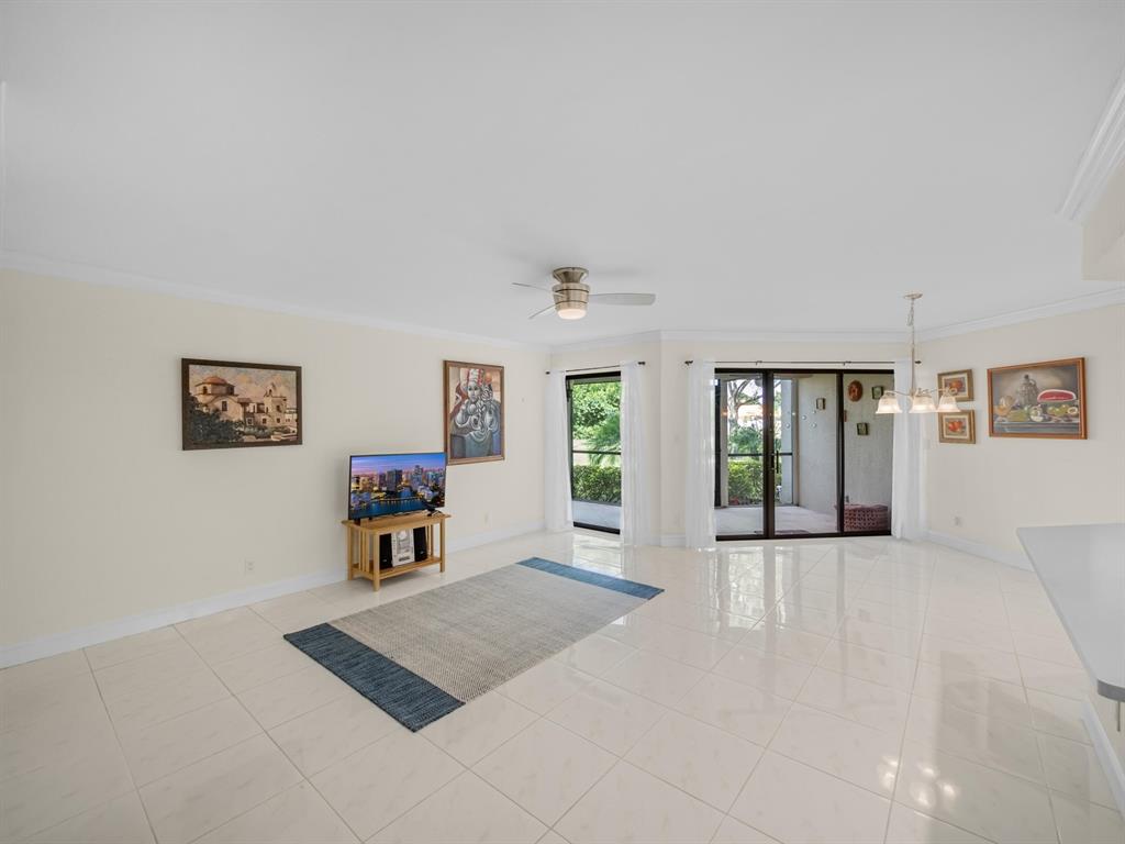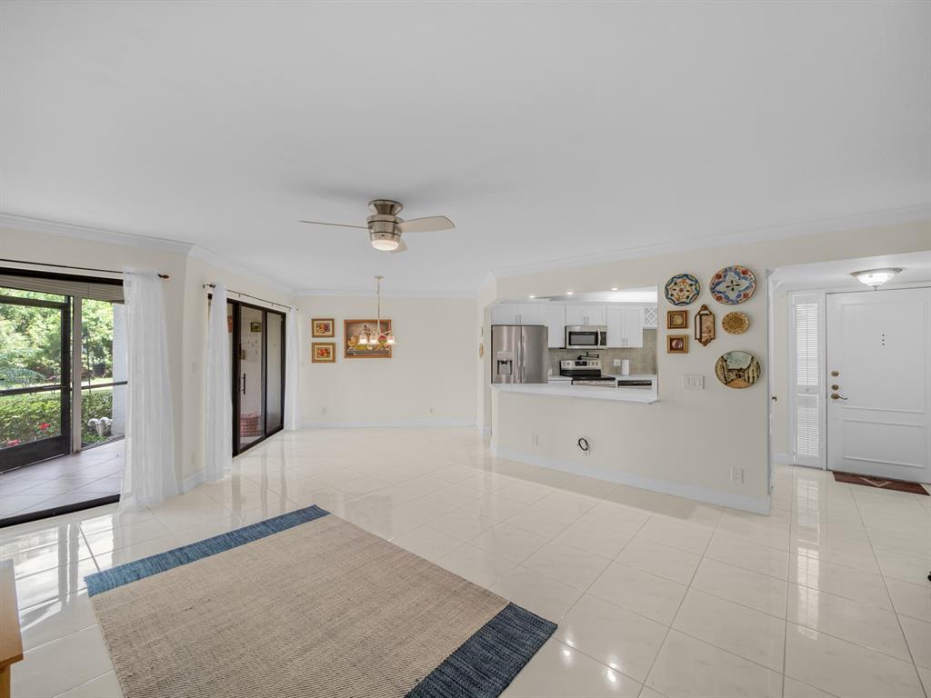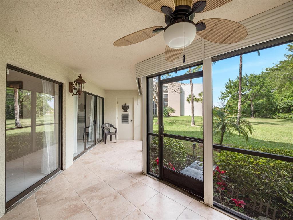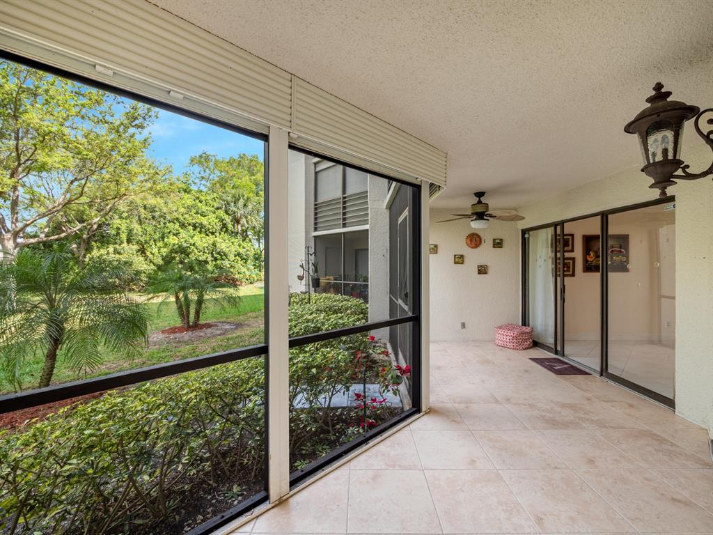 Spacious First floor open floor plan 2 bedroom 2 bath condo with a beautiful backyard that is just steps away to your community pool and sauna. Beautifully remodeled kitchen with pull out that opens up to your living area and screened in patio. Large primary bedroom with a large walk in closet with custom built ins. Primary bath has dual sinks, walk in shower and a large soaking tub.There is no popcorn ceilings and crown molding throughout. Assigned parking seconds to your door. 24/7 Manned gate, tennis courts and swimming pool. Location could not be better, minutes to shopping, dining and beach.