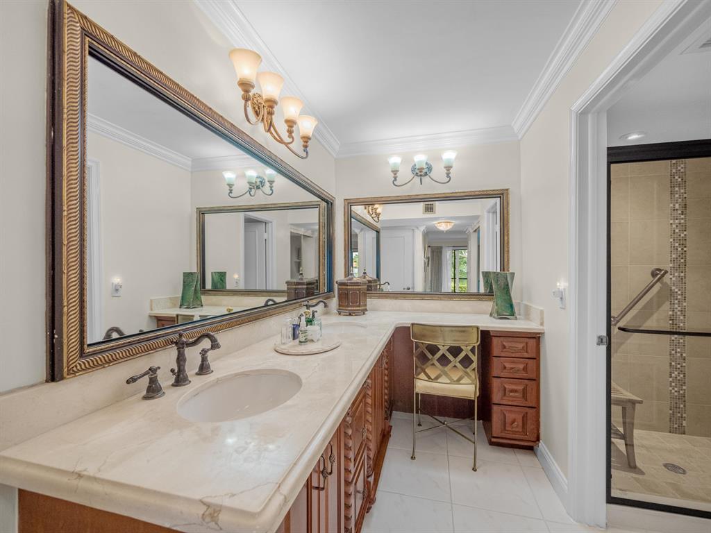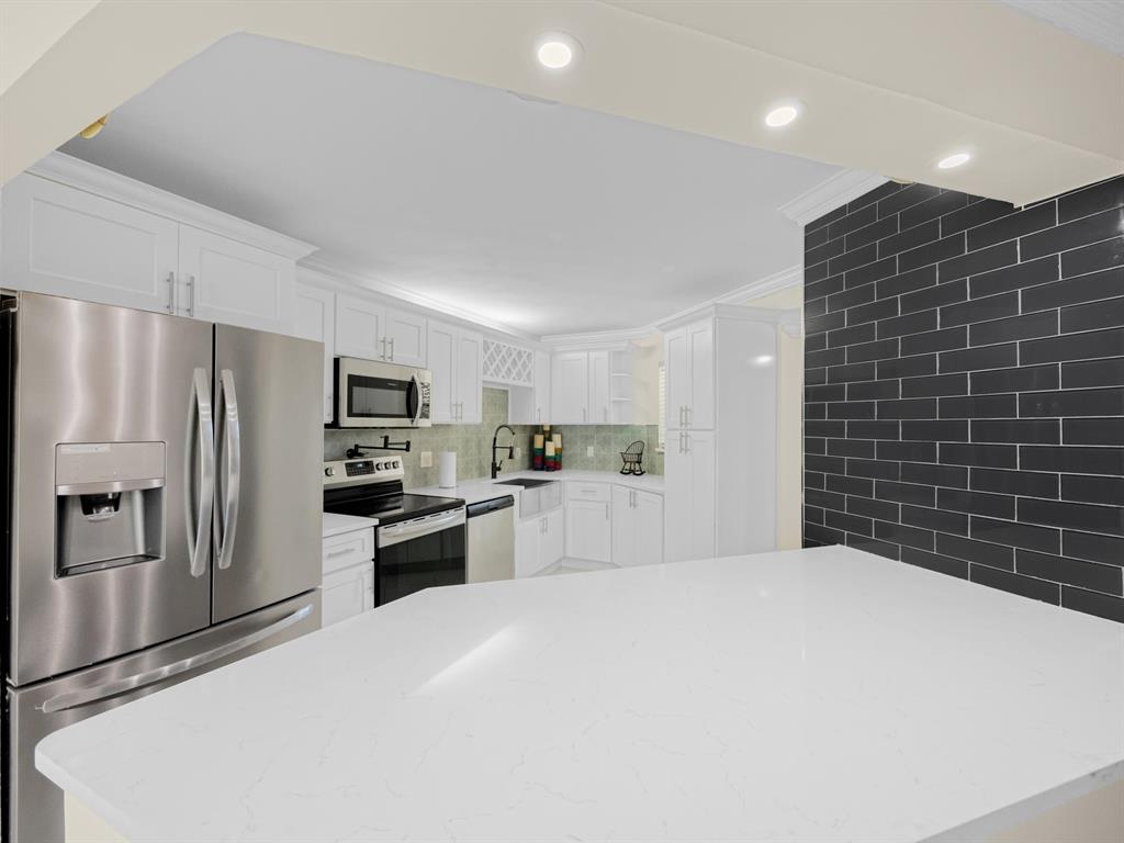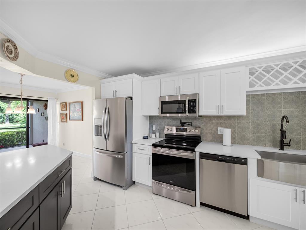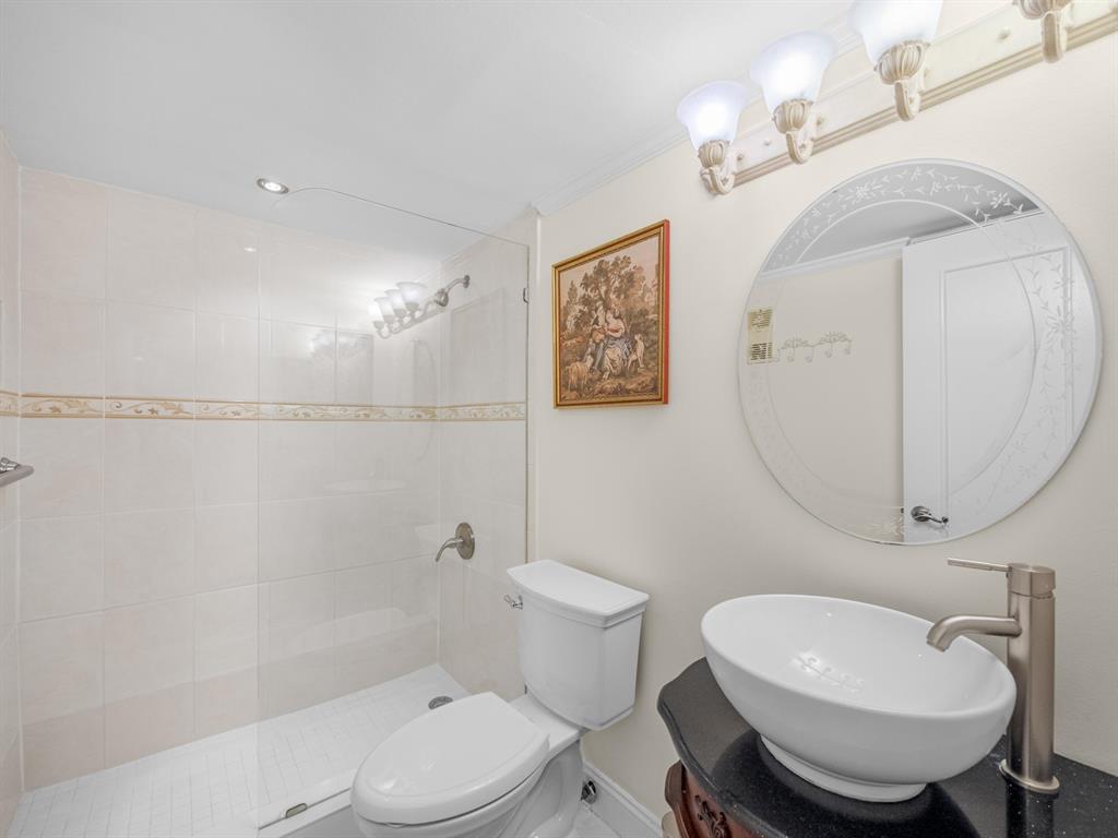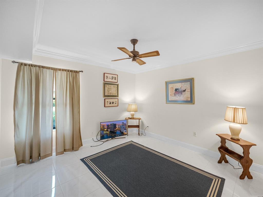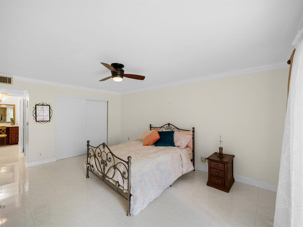 Spacious First floor open floor plan 2 bedroom 2 bath condo with a beautiful backyard that is just steps away to your community pool and sauna. Beautifully remodeled kitchen with pull out that opens up to your living area and screened in patio. Large primary bedroom with a large walk in closet with custom built ins. Primary bath has dual sinks, walk in shower and a large soaking tub.There is no popcorn ceilings and crown molding throughout. Assigned parking seconds to your door. 24/7 Manned gate, tennis courts and swimming pool. Location could not be better, minutes to shopping, dining and beach.
