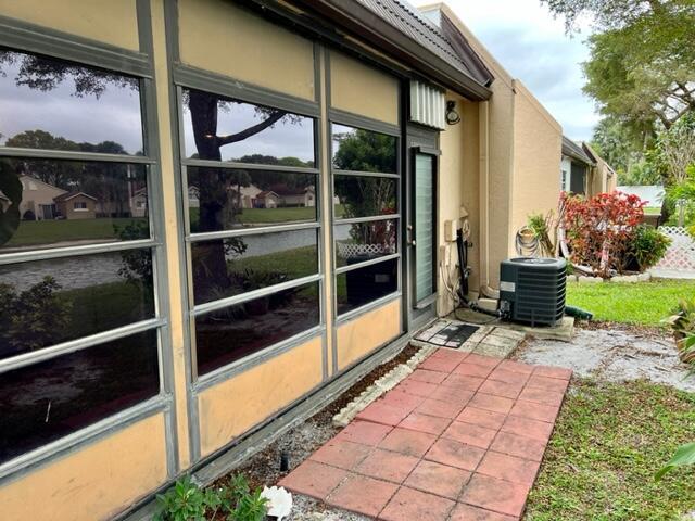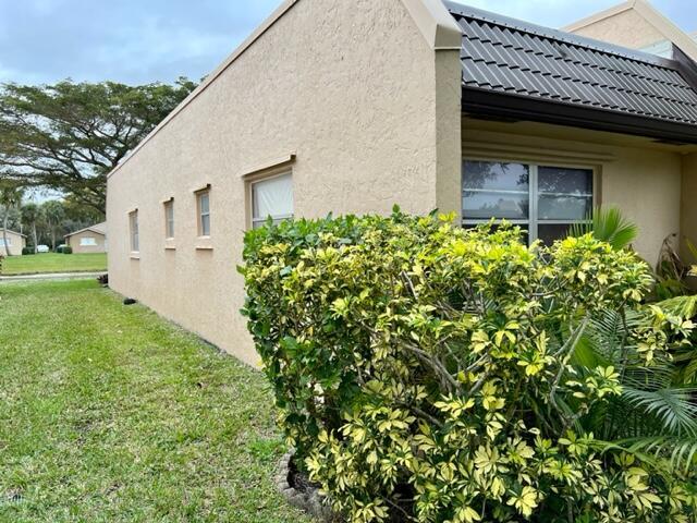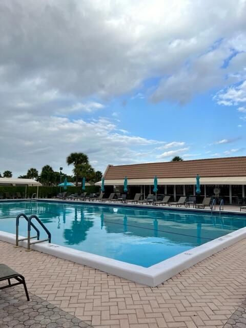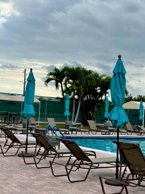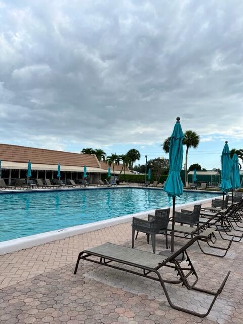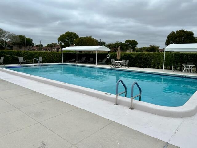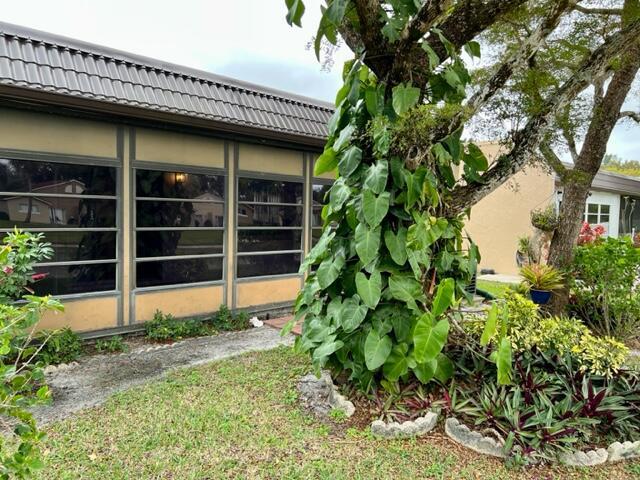 Priced to sell! This amazing waterfront 2 bedroom 2 bath, plus closed in back porch, corner villa is located in Golden Lakes, which is an active 55+ gated community in West Palm Beach. Front entry screened porch, walk-in master closet, linen closet and a backyard with many lovely exotic plants for your enjoyment. Neighborhood heated pool on Lake Susan - steps away. The Golden Lakes Phase B Clubhouse is just minutes away. This 55+ active community offers an amazing clubhouse with an exercise room, billiards room, card room, library, wifi, swimming pool with a separate hot tub, tennis courts, shuffleboard, supervised exercise classes, and plenty of entertainment throughout the year. 2023 - water heater and disposal. 2018 - new AC.