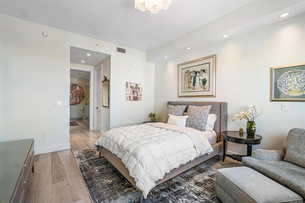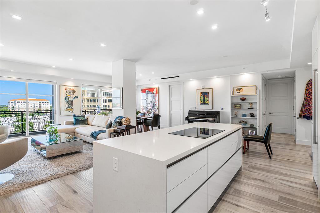Take in spectacular panoramic views in this 7th floor 2 bedroom, 2 bath residence in Tower 155 - one of Downtown Boca's newest and finest luxury buildings. Overlooking Mizner Park, experience true walkability in the center of Downtown - minutes from restaurants, shopping, the new Brightline train, and the beach. Spacious and filled with natural light, the interiors include an open concept layout with 10' ceilings, Italian porcelain flooring, custom recessed lighting, motorized window shades, custom closet systems, separated bedroom suites, and designer lighting. Enjoy an upgraded chef's kitchen with sleek Italian cabinetry to the ceiling, a huge island with waterfall counters, custom buffet, quartz counters, a glass backsplash and Bosch appliances, including an induction cooktop.