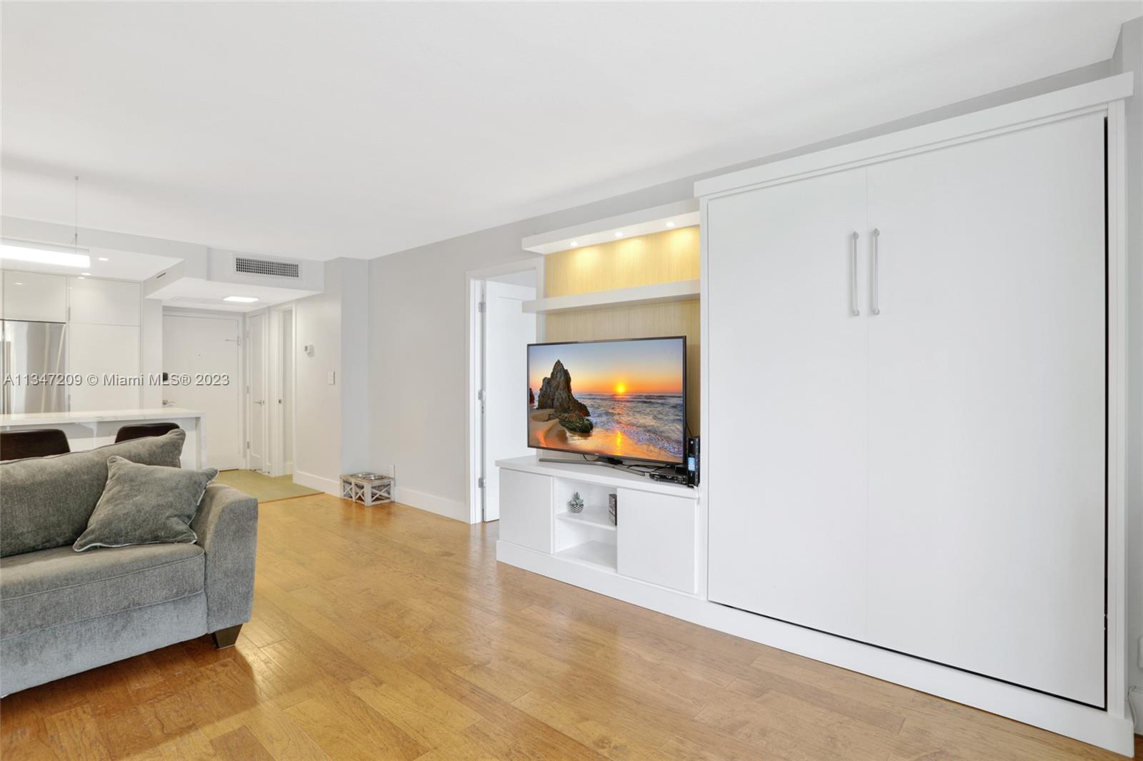 Live your Dream on the beach in this 1-bedroom/1 and half bath. Complete modern renovation. Ready to move in. RESORT STYLE LIVING ON THE BEACH! Open kitchen design w/quartz countertops. High-end professional appliances. LED recessed lights & more. Stone tile throughout the kitchen and bathrooms., Hardwood floors in bedroom. Built in Murphy bed for added guest convenience. Modern bathroom w/ clean lines & upgraded lighting. Closets feature contemporary chrome hardware & full system for maximum storage options. Hurricane Impact Windows. Internet and Cable TV is include in dues. The building has full reserves and has passed the 50-year recent inspection. PET FRIENDLY. Two pet any size are welcome. Make this your new home or winter gateway when not in use, rent it out! Rent Immediately.
