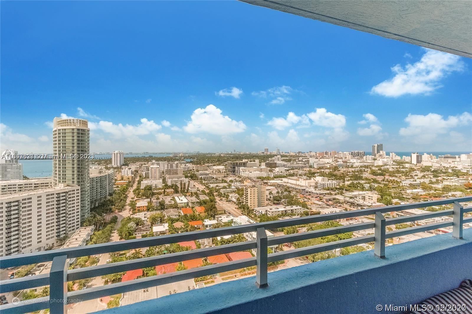 Designer model upgraded 26th floor with amazing bay and ocean views. Fully upgraded w/ top-of-the-line appliances and kitchen cabinets, wood floors, renovated bathrooms and reconfigured walls. Peaceful West Ave location, walking distance to restaurants, Lincoln Road, Whole Foods, and much more. This is a 24-hour full-service building. amenities include pool, gym, yoga room, tennis, volleyball & bayfront BBQ. 2 Parking spaces, 1 assigned and 1 valet.