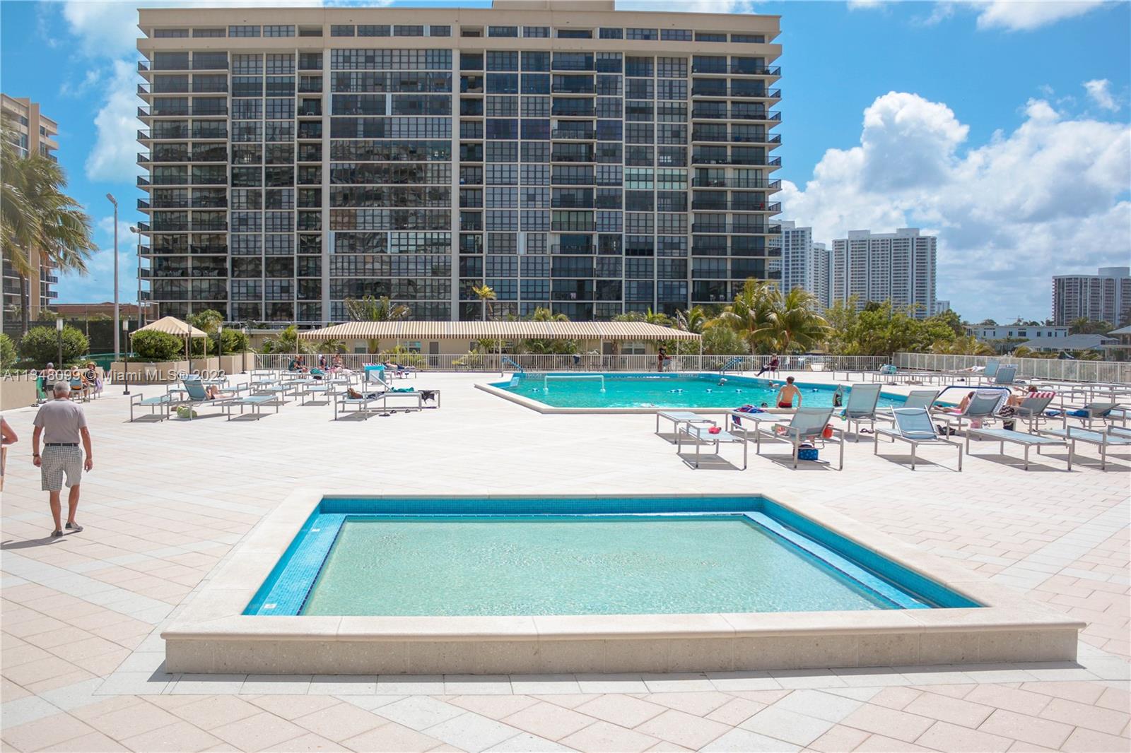 Hemispheres Ocean South, Beautiful Ocean & Intracoastal views, unit faces South, 2 bedrooms, 2 baths, laminate wood floors thru-out, new kitchen and bathrooms. Unit is being sold furnished. Assigned covered parking and storage locker. Resort style amenities include, Beach Access, Beach Service, 2 Restaurants, 2 heated pools, 2 mini-marts, 2 Fitness gyms, Sauna & Steam rooms, Tennis Courts, Marina, Billiard Rooms, Shuffleboard, Basketball, Barbeque area, 24 hr. Security and Valet. Air Conditioning, Basic cable & internet included in the maintenance. Easy to show!