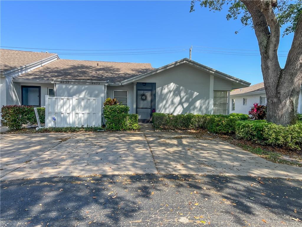Well-kept, spacious, 2 bedroom, 2 bathroom end unit villa in desirable, gated, 55+ community of Whisper Walk. Enjoy your morning coffee on the enclosed lanai overlooking the canal. This unit features an eat-in kitchen with granite countertops, new tile backsplash, & under cabinet lighting, HWH 2019, full sized washer/dryer in its own laundry closet, tile floors throughout, & carpet in bedrooms. Both bathrooms have newer vanity & toilet. Master bedroom has a walk-in and double closet both with built-ins. There's plenty of additional closet space, as well as a storage closet to the left of the front door. The association just completed outside painting, driveway painting, and enlargement of mailboxes. Great location... close to highways, restaurants & shopping. Don't miss out!
