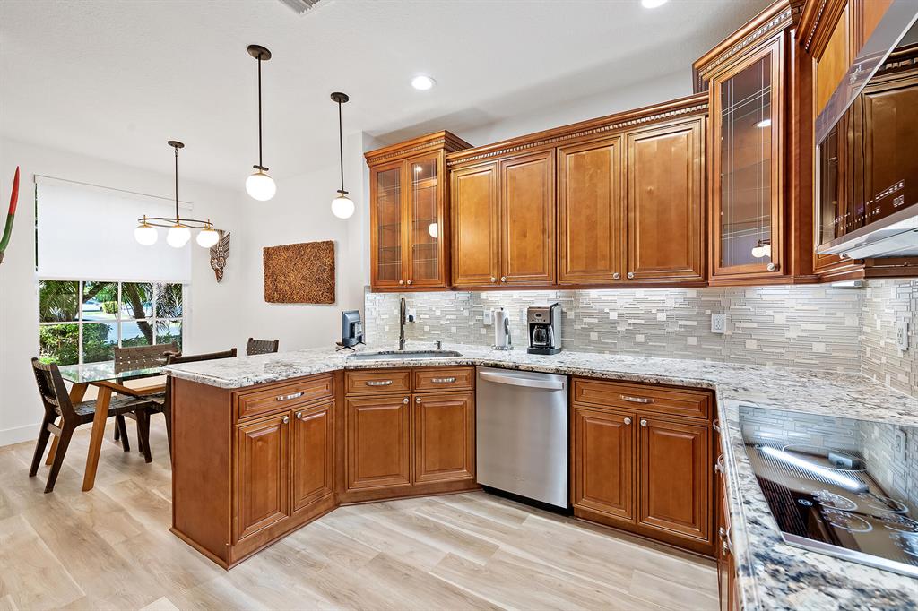 This updated & well-maintained 1st floor condo in Boca Pointe offers a comfortable & modern living space w/ impact glass throughout the unit. The enclosed Florida room provides an additional 130 sqft of living space for relaxation & entertainment. The stunning, eat-in kitchen features beautiful cabinetry, stainless steel appliances, & granite countertops. The primary bedroom boasts a newer bathroom w/ dual sinks & a walk-in closet, while the split bedroom plan offers privacy & convenience. The third bedroom has been converted to an open den area, which can serve as a home office. This condo comes w/ a 1-car garage & optional club memberships are available to residents. Overall, this condo offers a beautiful, functional, & low-maintenance living space in a desirable location.