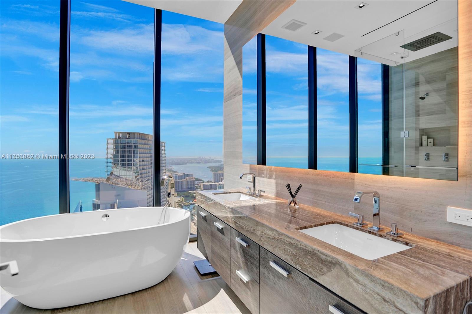 Welcome to a truly unique Boutique Residence of MUSE. High above any neighboring buildings, you may find yourself living in A One-of-a-Kind, Luxury Smart Home on the 47th Fl. Which offers you an unobstructed Panoramic Ocean & Intracoastal views from every room. This 2BR +Den, that can be converted into a 3RD BR, boasts 3 Full Baths. You will find exquisite marble flooring throughout the unit, surrounded by wall of windows along with 12ft. ceilings. Top-of-the-line appliances such as WOLF & Sub-Zero and fixtures Dornbracht & Duravit makes this a remarkable home. Outdoors living consists of a 60ft wide and 36ft deep balcony with a Summer Kitchen for entertaining year round. Enjoy the finest Amenities such as the Infinity Pool & Lounge, Spa, Gym, Beach Service & Resort like Concierge.