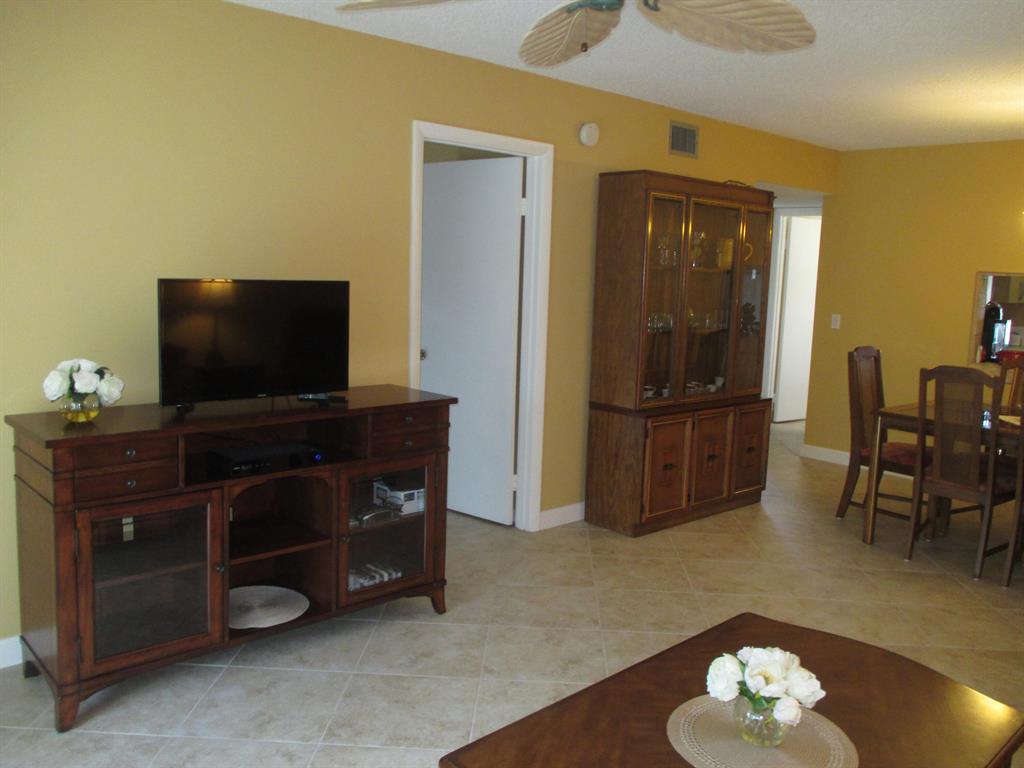 Move-in ready lg Corner 2/2 unit. Offered FURNISHED ONLY ''Turn Key''. All 18'' tiled fls, 5'' baseboards, 31x6 scrnd patio w/ storage closet. Patio has roll down shutters. Kit has tiled backsplash & tiled counter top. A/C coil just replaced. Broward Factory Service contract to be transferred to buyer. Short walk to satellite Pool for Lk Meryl residents. Monthly maint includes XFINITY high speed INTERNET, Comcast cable w/ premium channels, water, bldg insur and loan payment for concrete restoration for all 2-story bldgs on Lk Meryl. Each bldg has laundry facilities. Full time social director schedules shows & activities. Clubhs, Pool, hot tub, billiards, game rm, Gym, CAFE, library, & so much more. Courtesy Bus to grocery, shops, malls two days a wk. Come discover Golden Lakes Vil