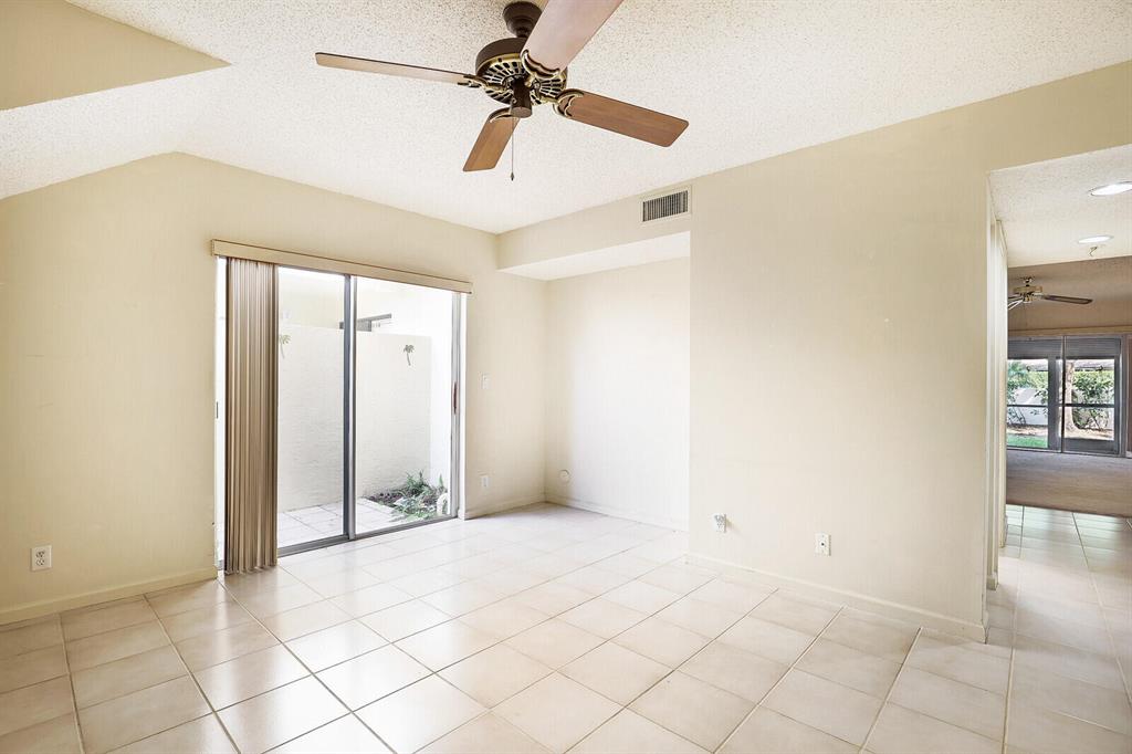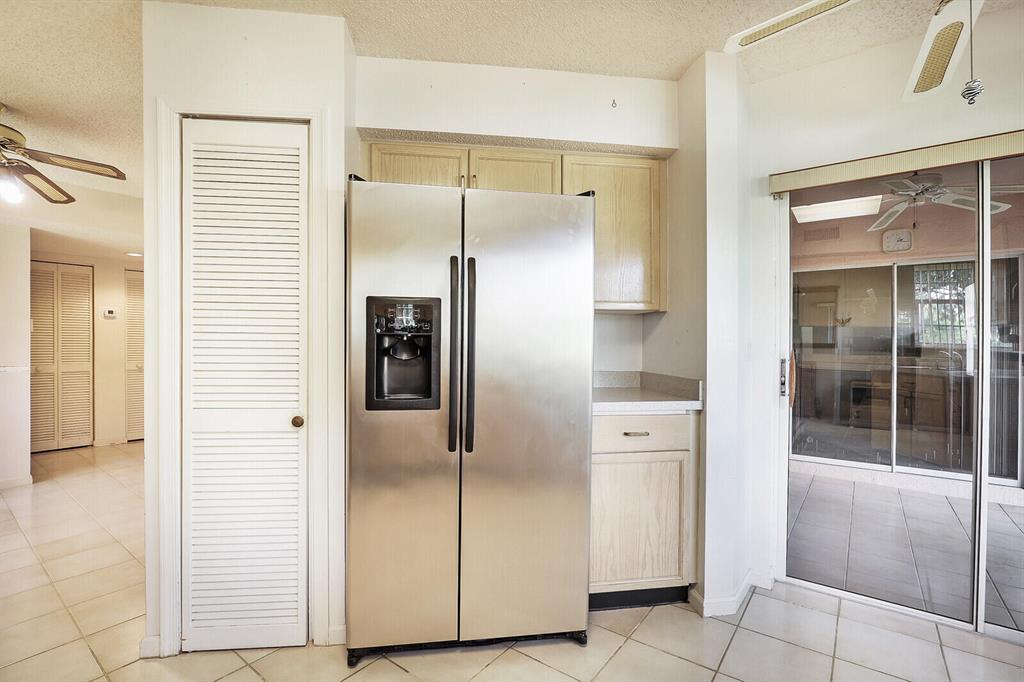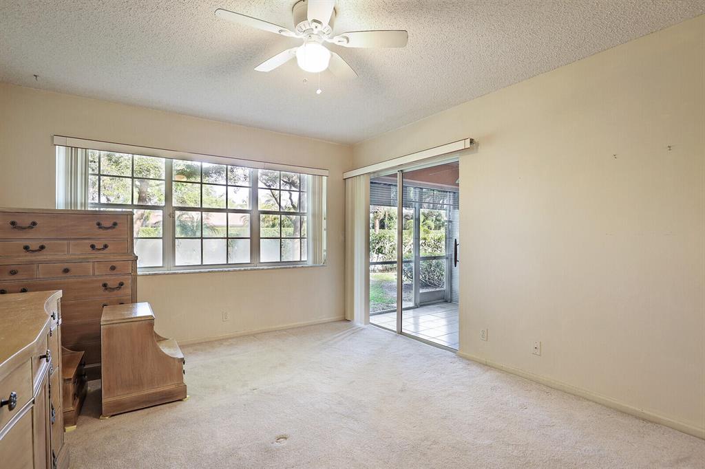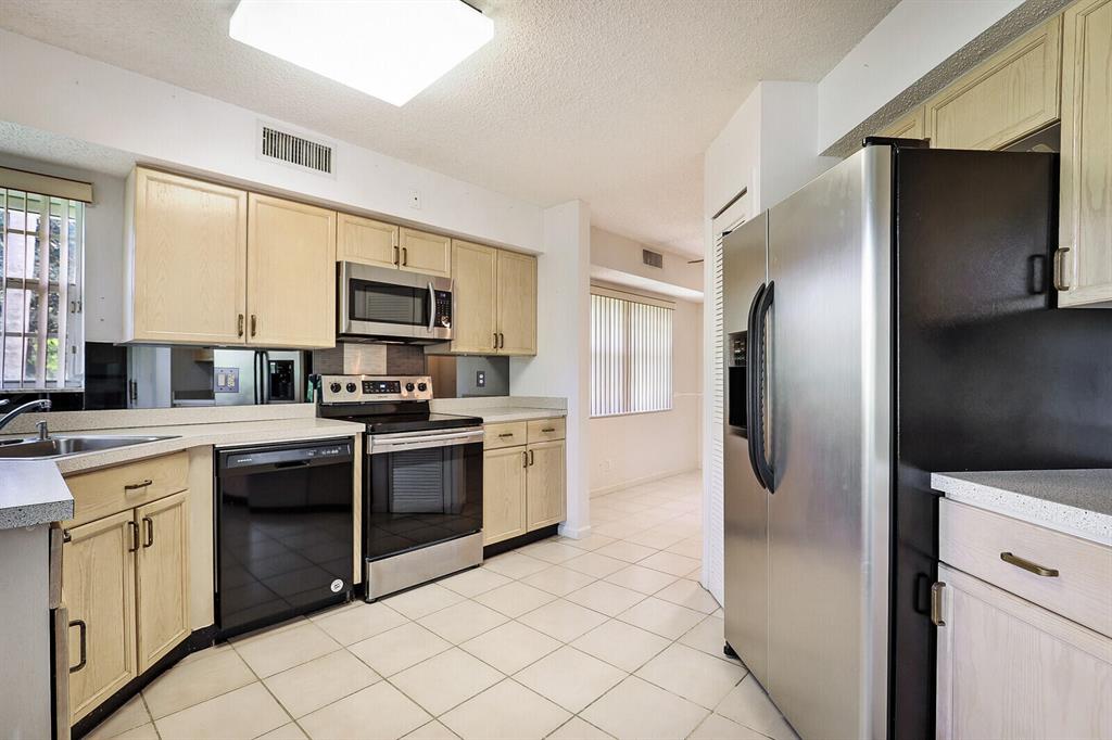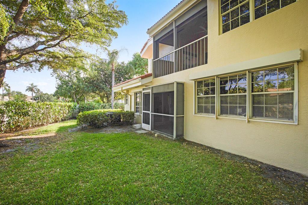 Lovely end unit condo located in the highly desired Boca Country Club. This 3 bedroom, 2 bath condo is perfect for those seeking ane easy living environment. The unit is well cared for and features accordion storm shutters for added protection during storm season.The screened back patio offers a peaceful view of green space, and the large kitchen with breakfast nook provides ample space for cooking and entertaining. The kitchen and dining room boast neutral ceramic tile for easy maintenance.The master bedroom includes private access to the screened porch, closet space, and a dual sink bathroom with a walk-in shower and glass door. The second bathroom features a glass door tub and shower.This property offers convenience and comfort in a highly desired location.