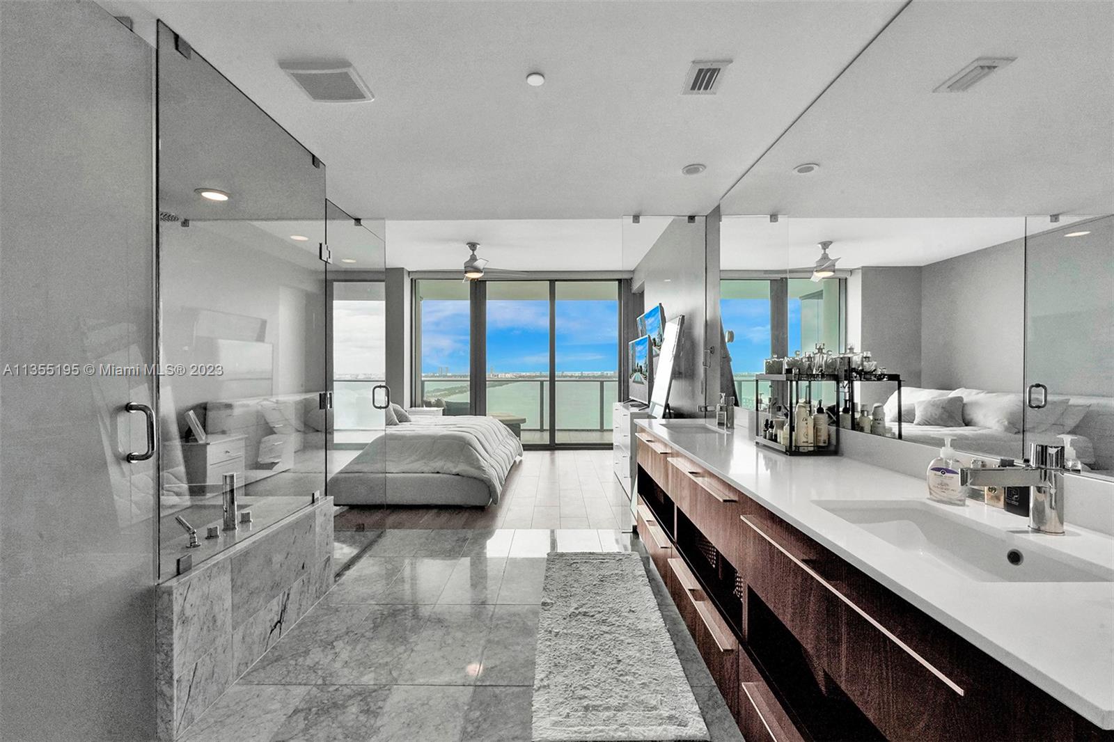 Enjoy one of Miami's best bay views, One Paraiso sits directly on the seawall facing Biscayne Bay. This upgraded 1 bed + den 1.5 bath condo features marble and porcelain tile throughout. The Kitchen comes fully equipped with Subzero and Wolf appliances, and Italcraft cabinets. The master bathroom offers a rain fall shower, soaking tub, and dual vanities. The unit comes with 1 assigned space next to elevator. Enjoy the spectacular amenities at One Paraiso with, 3 Pools, jacuzzi, 2 saunas, 2 steam rooms, theater, fitness center, business center, piano bar, tennis courts and more! A ton of lease space getting filled out in the Paraiso Community! What an incredible opportunity to own in One Paraiso!