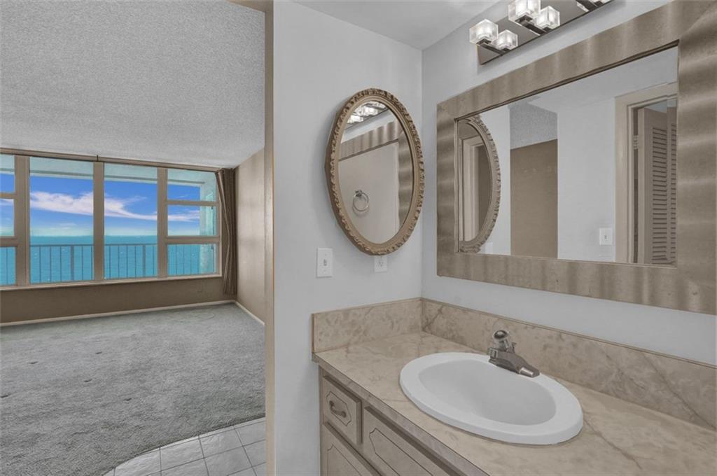 EXCEPTIONALLY RARE South-East CORNER PENTHOUSE! 2 sizable bedrooms and bathrooms. Direct Ocean views to the East from the Living room/dining and master bedroom. Fantastic City Views to the South from the living and guest rooms. Bring your best STARCHITECH to re-imagine this extraordinary space, on the sand boasting ¾ height Impact Windows to flood every room with light. Washer/Dryer in unit with sizable private balcony. Resort-style amenities includes fitness center, heated pool, sun deck, 24 hour Security guard, tennis court, BBQ, Library, Chaises and Indoor Garage Parking. Located close to shopping, restaurants, entertainment, golfing, boating, fitness centers, and parks. Pool is being replaced (all assessments for this project have been paid by seller)