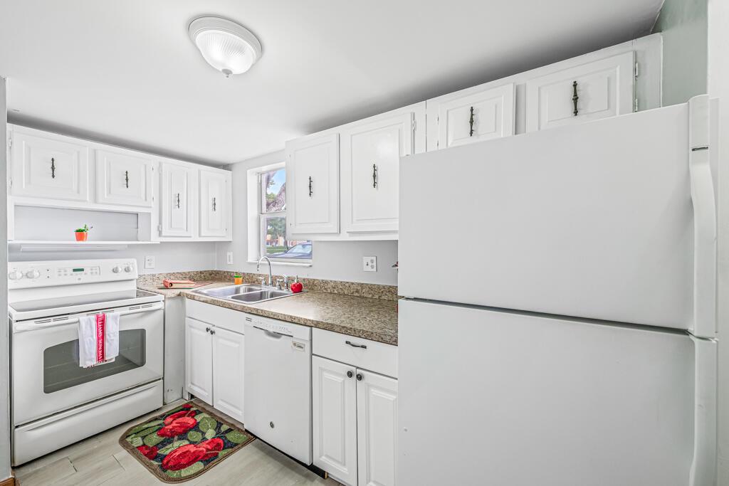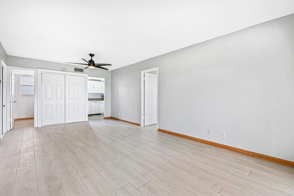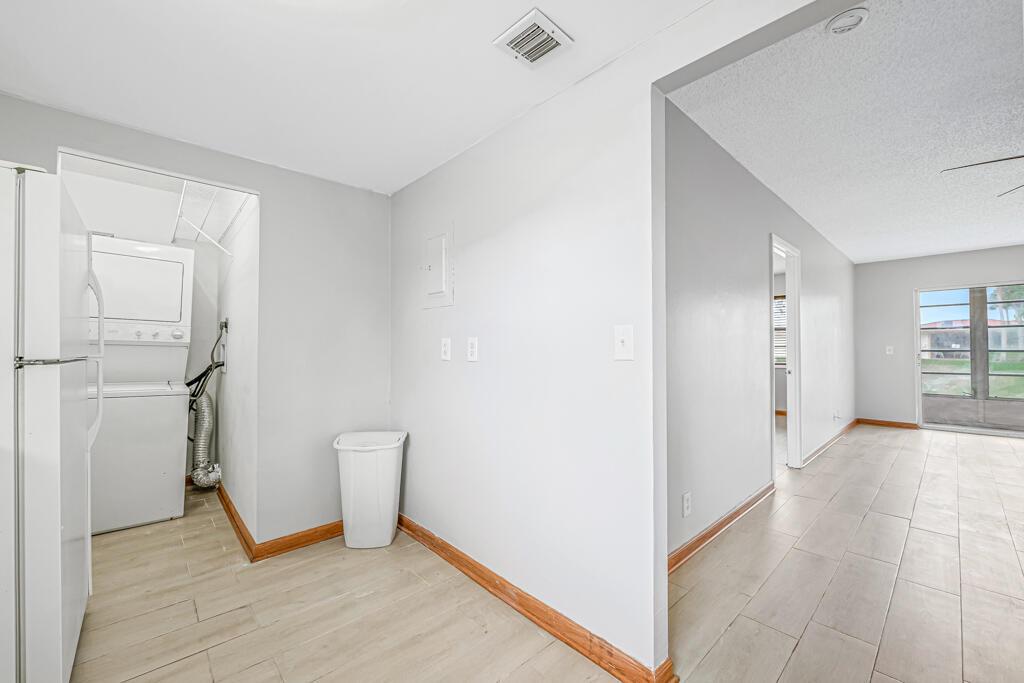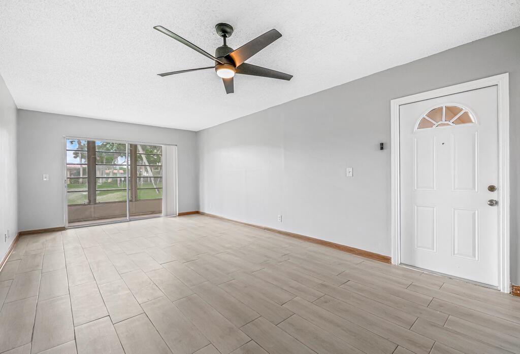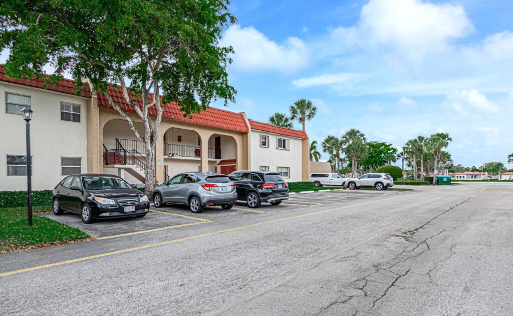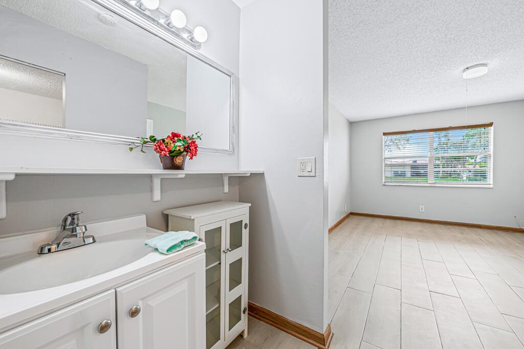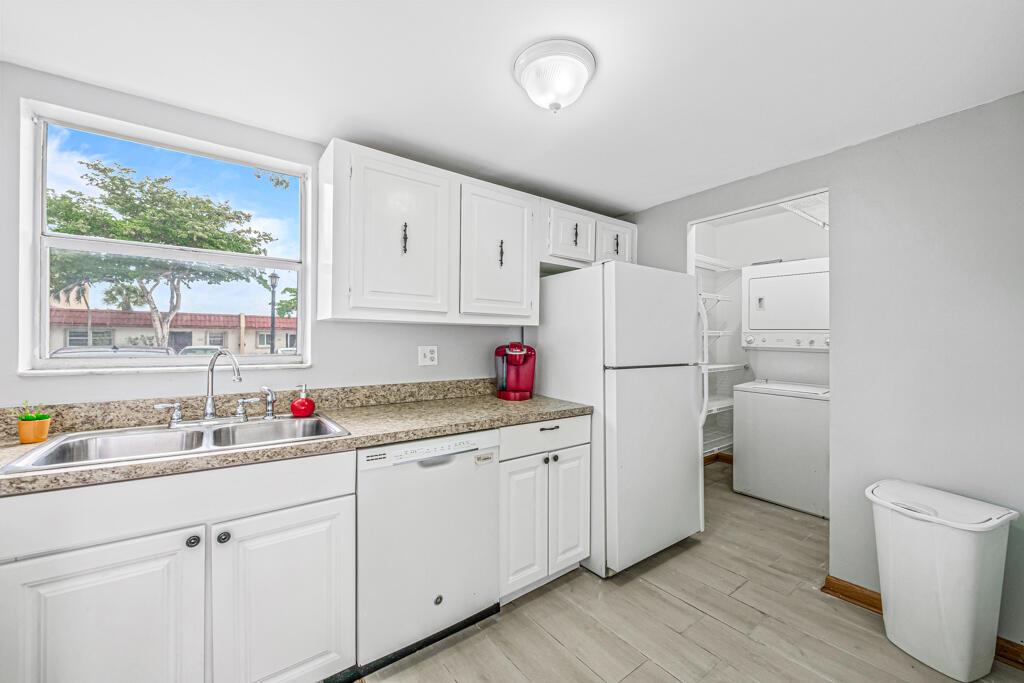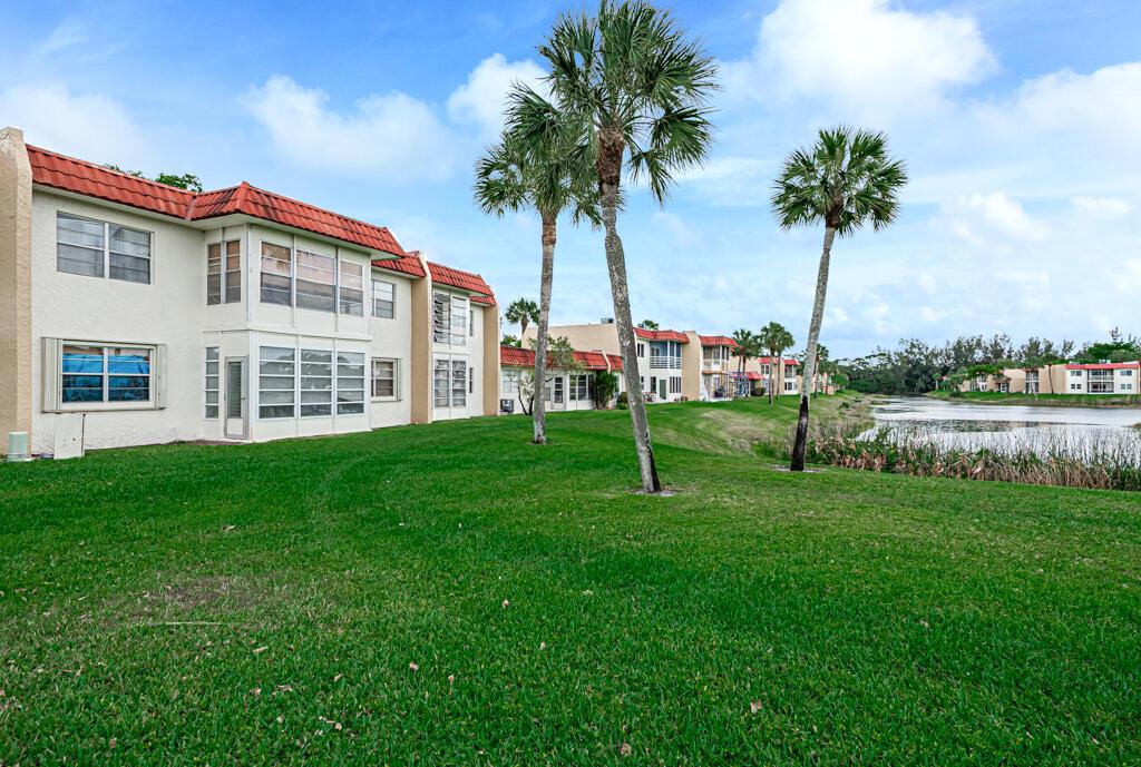 Wonderful corner unit 1st floor condo on the lake with views of the pool and clubhouse, in popular 55+ community in Golden Lakes. The condo has 1 BR and 1.5 BA very spacious. Modern wood look porcelain tile throughout the condo, fresh paint, Washer, and Dryer in Unit. Master bedroom has attached bathroom and walk-in closet with views of the lake. Living room has sliding glass doors that access the enclosed covered patio with access to the lake and great view to the pool. The community allows 2 cats, and offers secured guard gate entrance, club house, pool, gym, billiards room, theater shows, bingo hall, library and much more. Community with a Bus Transportation available for most services. Centrally located to shopping banking, restaurants, turnpike, I-95 and airport.