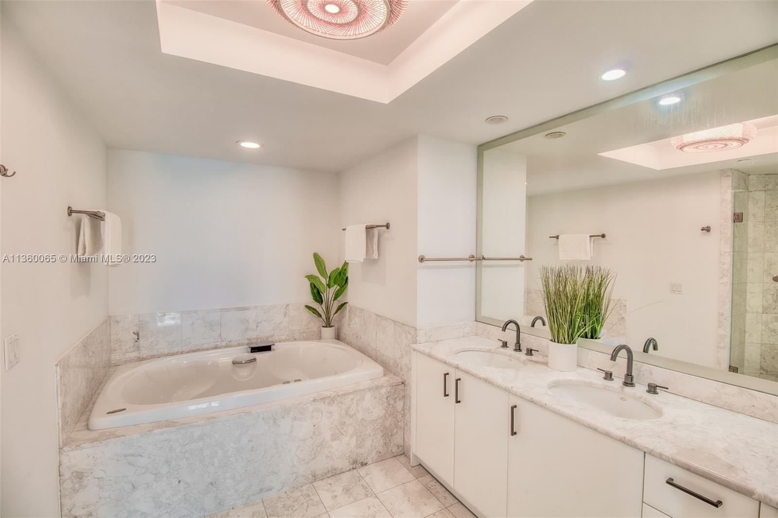 Live limitlessly in the premier South, South East corner 2 bed/ 2.5 bath at Jade Brickell with 3 parking spaces! Once you enter this property through your semi-private elevator, the corner-glass windows bring in beautiful natural light and offers dramatic views of Biscayne Bay! 1,878SF of desired open-concept living offers plenty of flexibility to wine-and-dine or simply watch the sunset fade from every room. Each spacious bedroom features a relaxing en-suite bathroom and offers plenty of closet and storage space. This sophisticated, stylish condo features 36' Calcutta Marble flooring throughout, Subzero and Miele appliances, white Italian cabinets, rain shower and jacuzzi tub. Located in Brickell’s epicenter for swanky shopping.