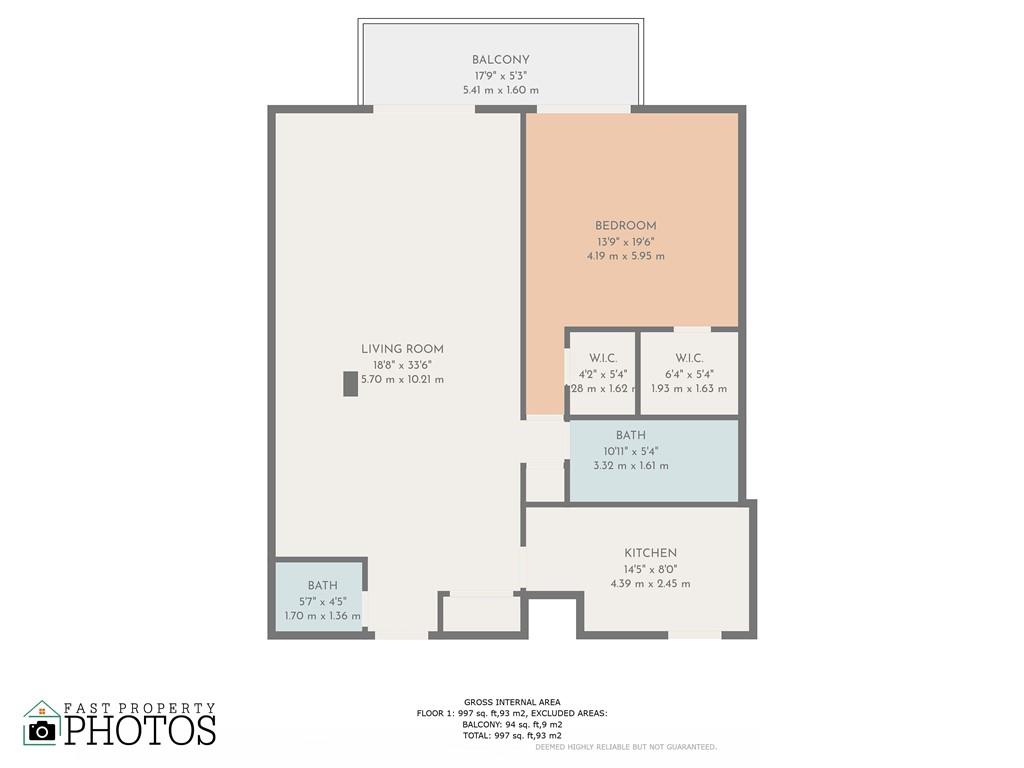 • Жилая площадь: 1040 фут² / 97 м²
