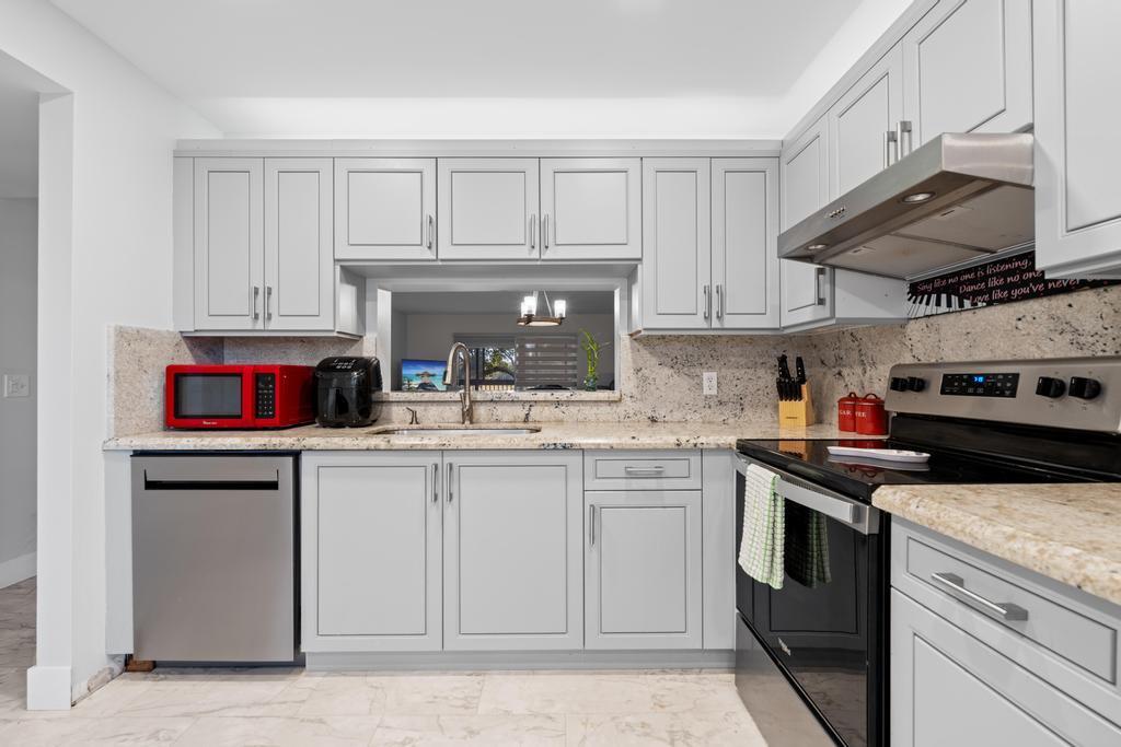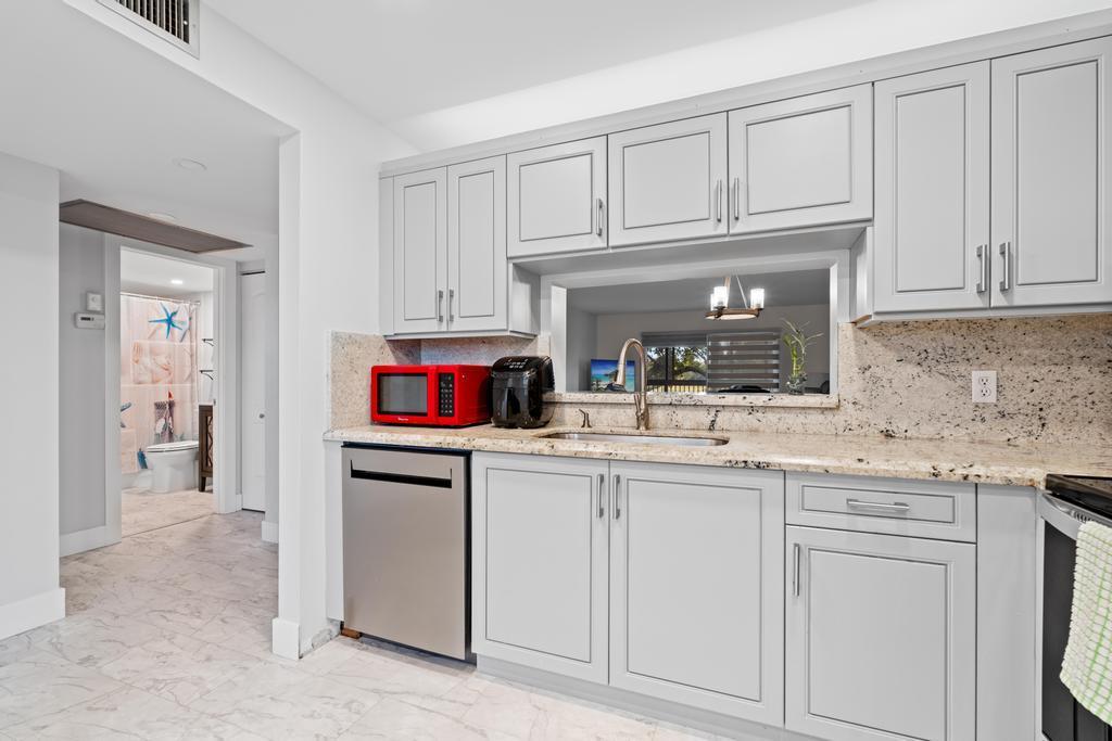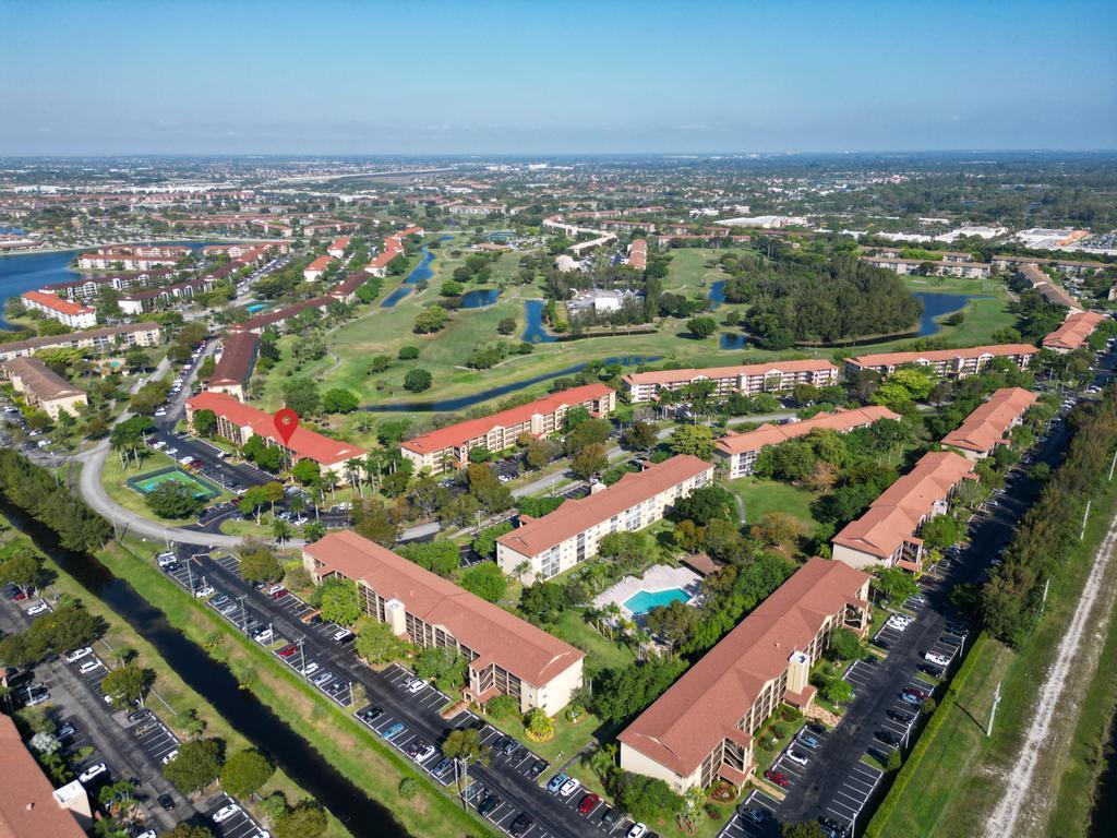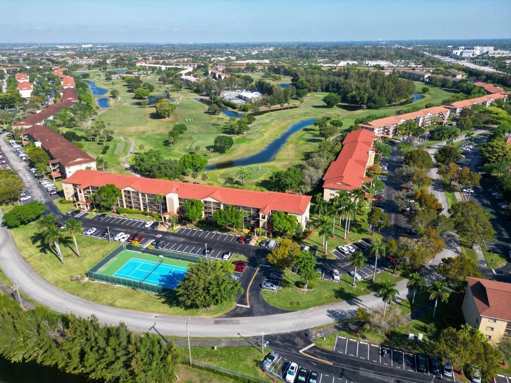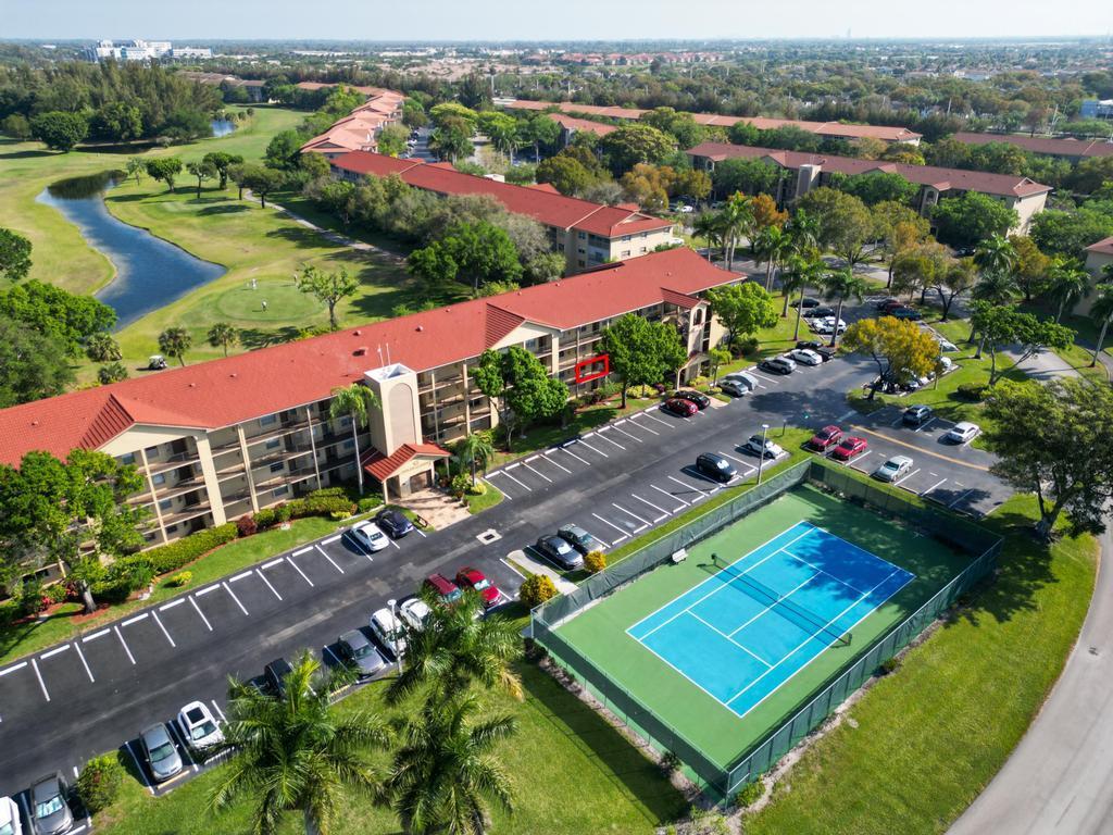Beautiful unit with panoramic golf course & lagoon view in Century Village! Screened balcony with amazing views. Large master suite with big walk-in closet. Washer & dryer in unit. Newer contemporary style kitchen cabinets with granite countertop & upgraded kitchen lights. Newer A/C unit. Large social areas. Resort style club house with lots of amenities: 2 fitness centers, tennis courts, swimming pools, billiard room, library, golf course, cafe restaurant. Convenient on site medical center and pharmacy. Association fee includes: internet, water, sewer, trash, basic cable, insurance. Great location! Close to I-75, Pembroke Gardens Mall, CB Smith Park, Memorial Hospital, Pembroke Lakes Mall