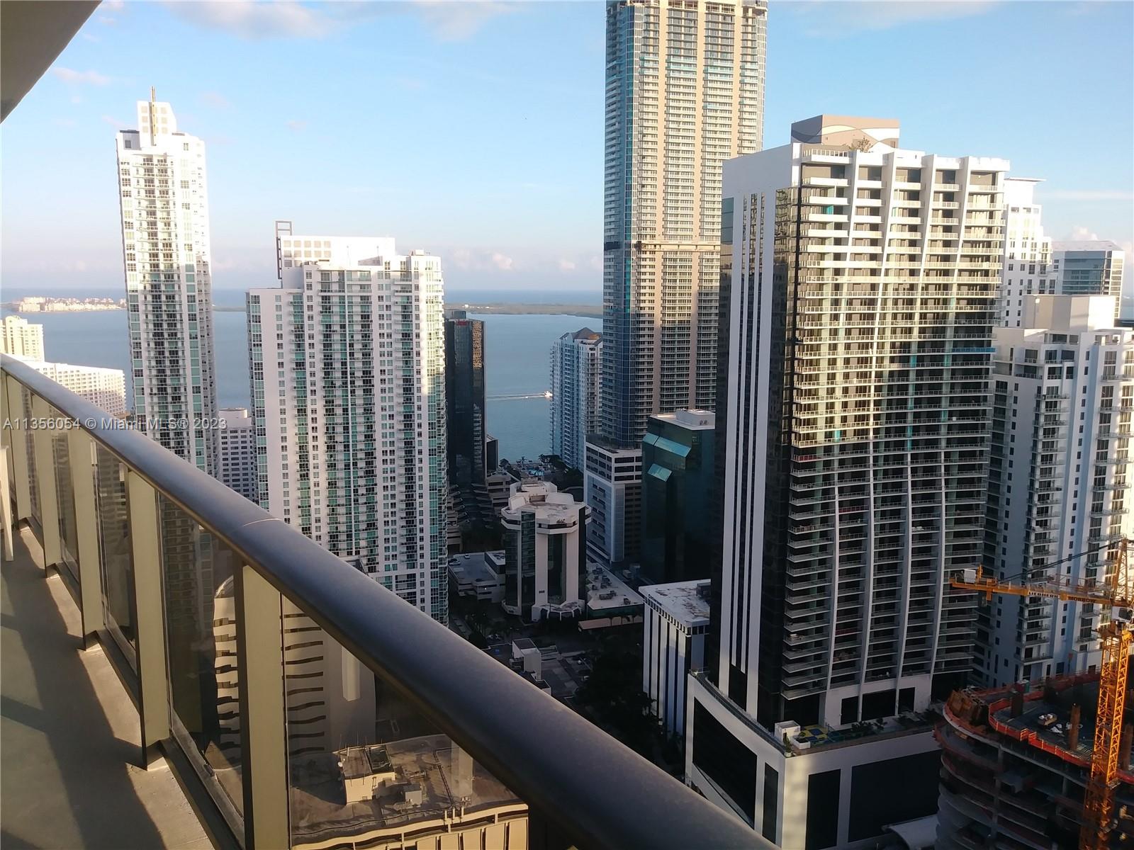High floor residence with panoramic views. Enjoy beautiful sunrises and sunsets from a large open balcony on the most vibrant part of Miami. This amazing building is located on the heart of Brickell and withing walking distance to Brickell City center mall and the most trending restaurants, GYMs, nightlife and much more. The unit has been upgraded with imported all white porcelain floors, open kitchen with top of the line appliances, wood like porcelain on the terrace, etc. Very adaptable and spacious floor plan with a Den and two full bathrooms. Unit is leased until the end of March. This one won last!