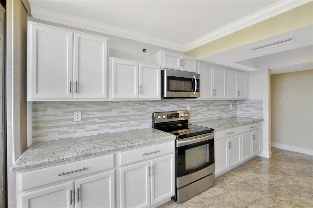 Welcome to your beautifully renovated 2 bedroom, 2 bath condo located in a charming boutique building of La Residence in the heart of Boca Raton. This stunning residence boasts custom modern finishes throughout to create a sophisticated and luxurious living experience. As you enter the condo, you will immediately notice the spacious open floor plan that seamlessly blends the living, dining areas that leads into the kitchen. The living room features large sliding doors that let in an abundance of natural light, thereby creating a warm and inviting atmosphere.The fully updated kitchen is equipped with stainless steel appliances, custom cabinetry, and sleek quartz countertops for an expended kitchen that's ready for your cooking pleasure. The dining and living area are perfect for hosting